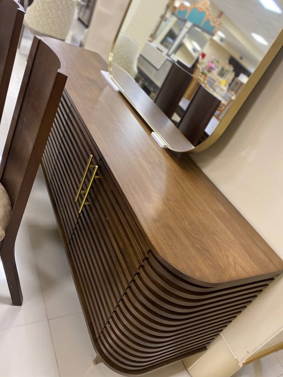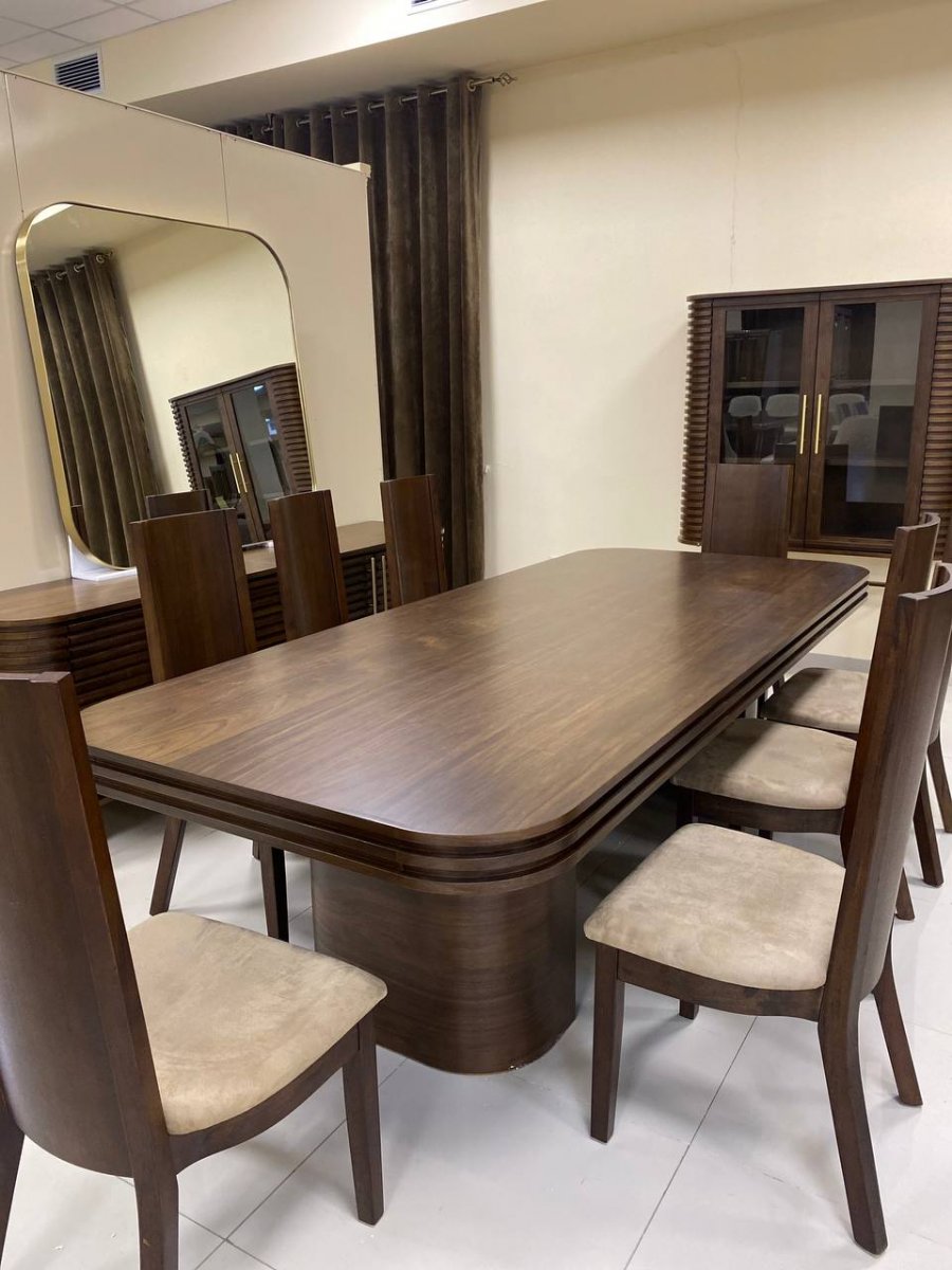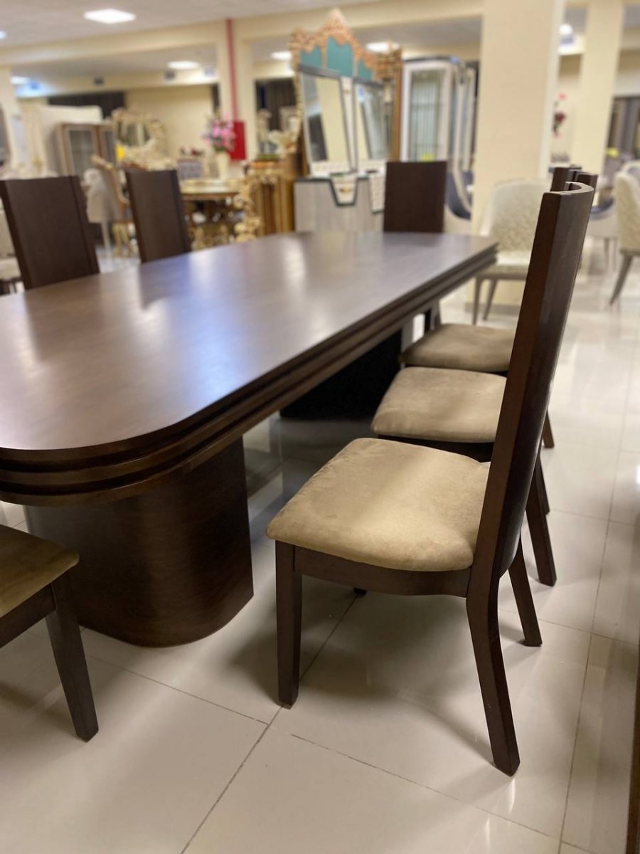 В комплект входит: Витрина 2-х дверная, комод с зеркалом, стол обеденный 2.6м, стул 8 шт