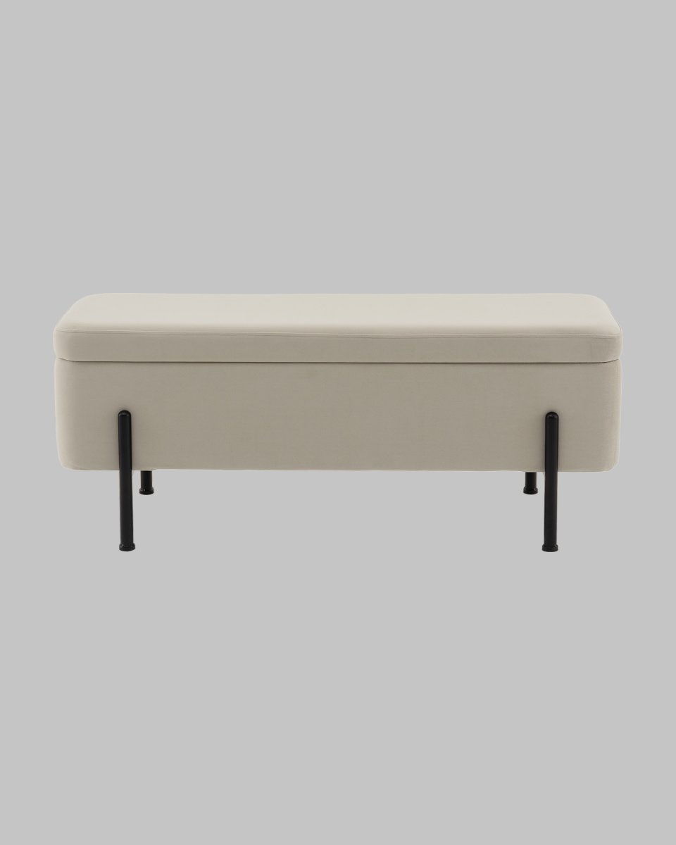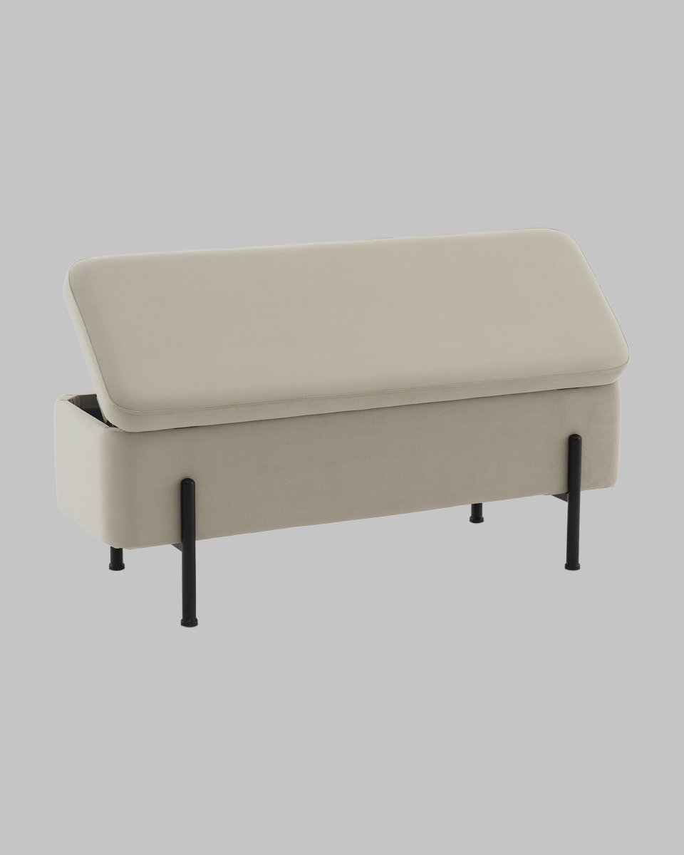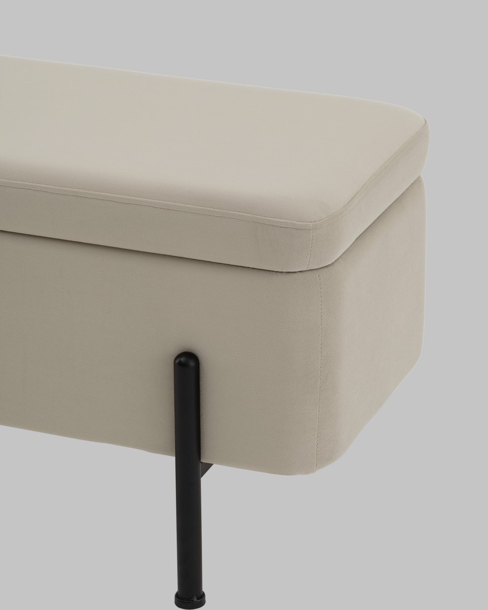 Банкетка Болейн с ящиком велюр бежевый черные ножки