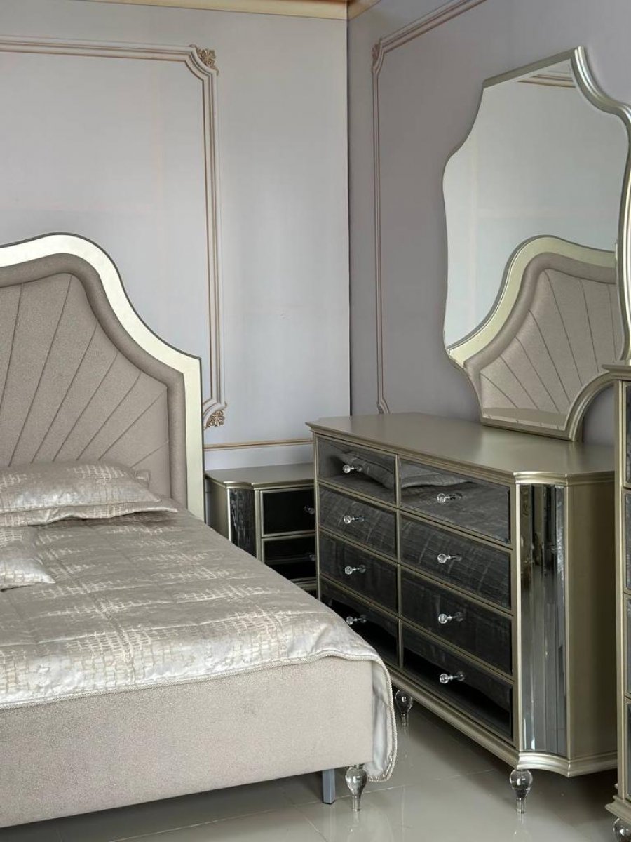 ДЕЗИРЕ Комплект (Кровать 1,8 + 2 Тумбочки + Туалетный стол с/з + Пуф + 6дв. шкаф)