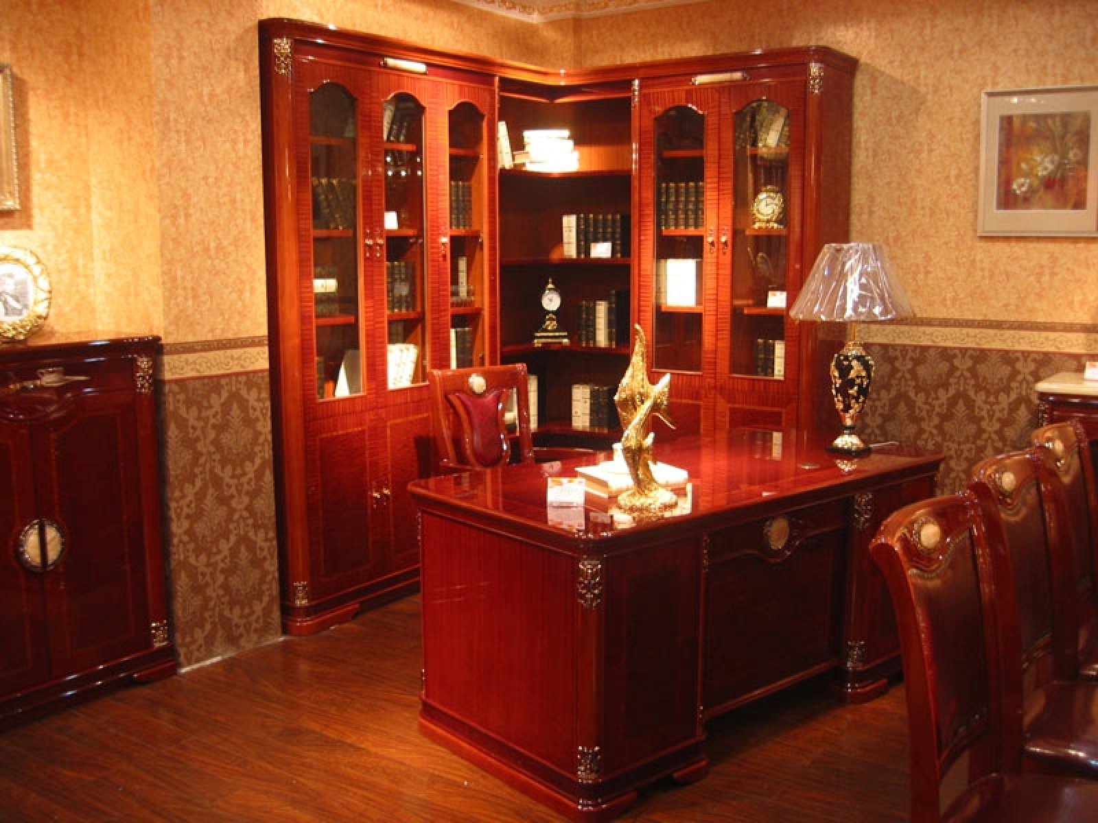 Эксклюзивная мебель из натурального дерева, декоративные элементы с золотым 24-каратным гальваническим покрытием, украшены вставками из натурального камня и стразами "Сваровски".