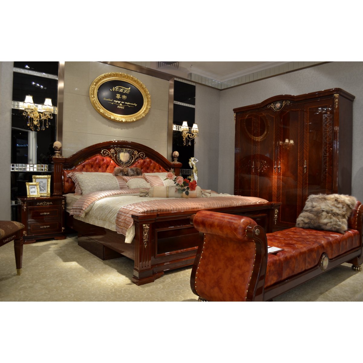 Эксклюзивная мебель из натурального дерева, декоративные элементы с золотым 24-каратным гальваническим покрытием, украшены вставками из натурального камня и стразами "Сваровски".