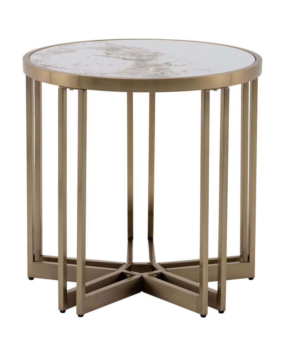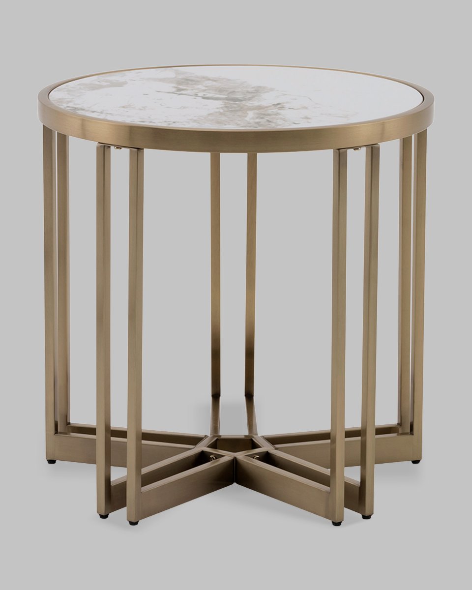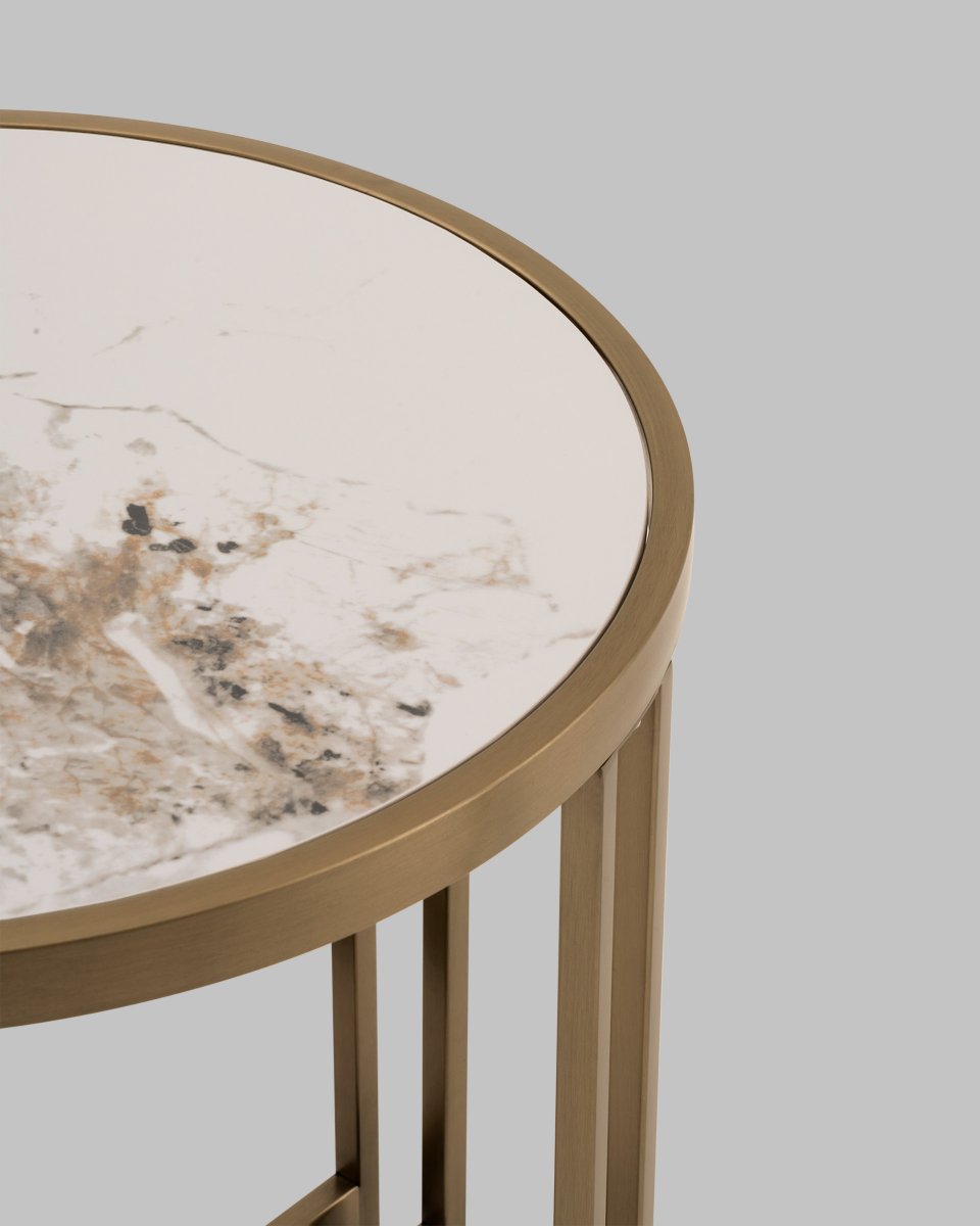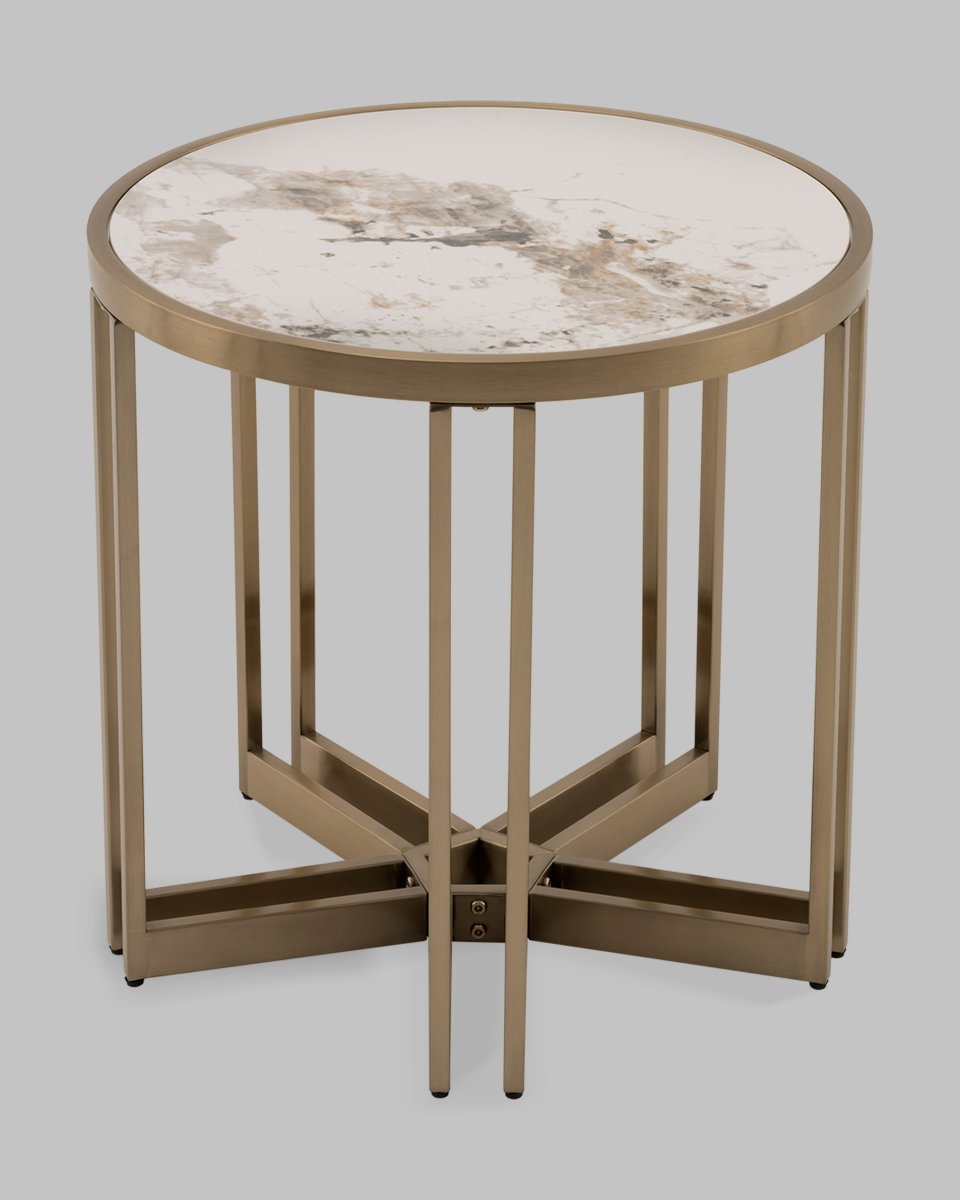 Журнальный столик Алиада 55х55 см светлая керамика сталь шампань