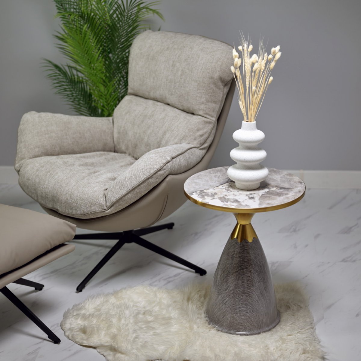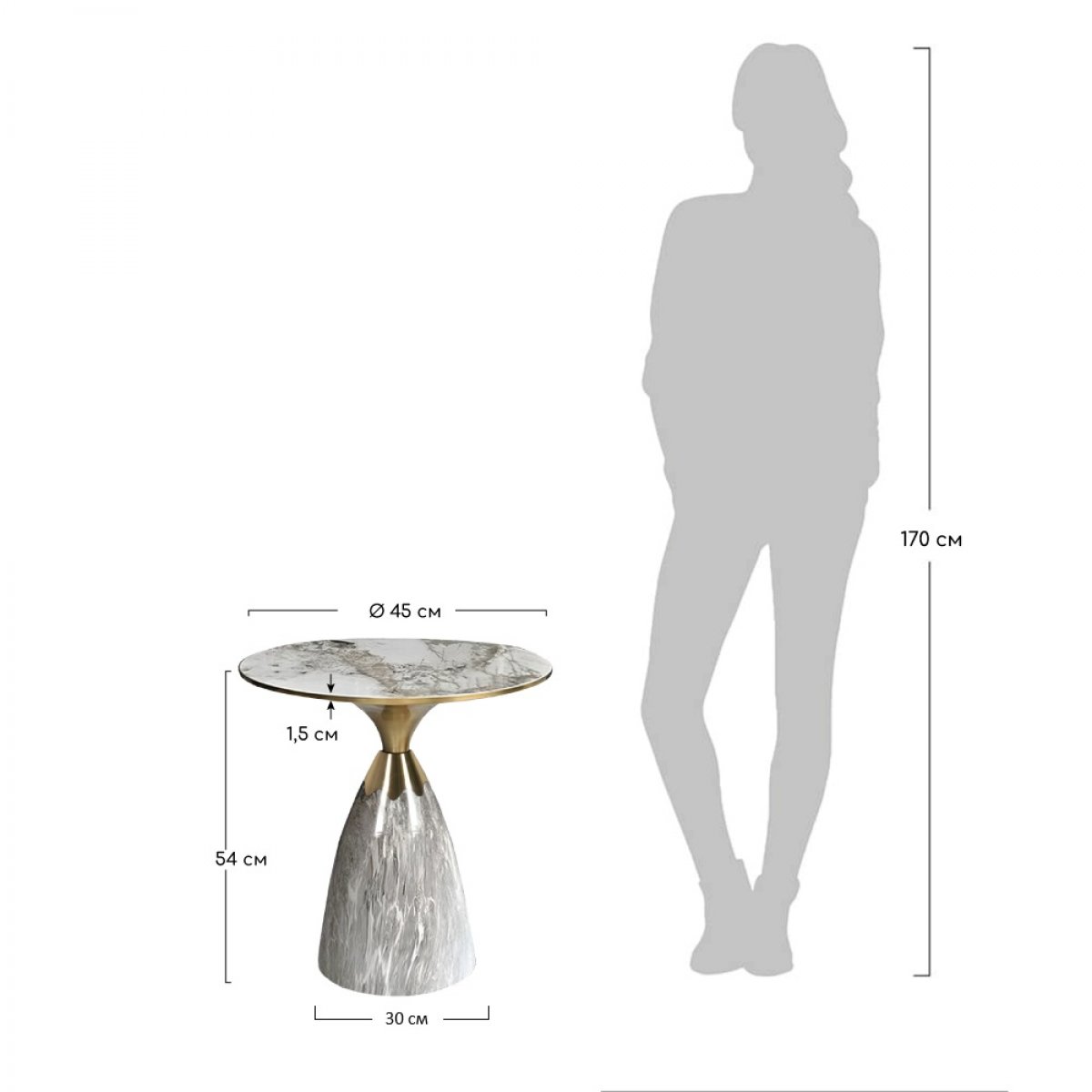 Кофейный столик Secret диам.40см x 54см, серый мрамор, металл, керамика