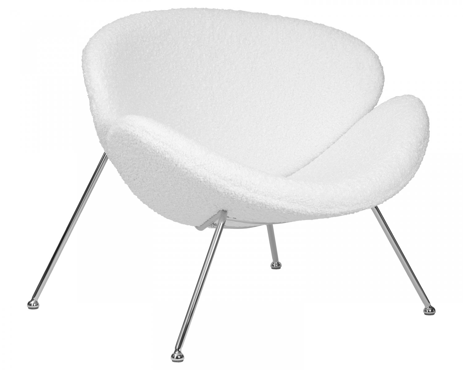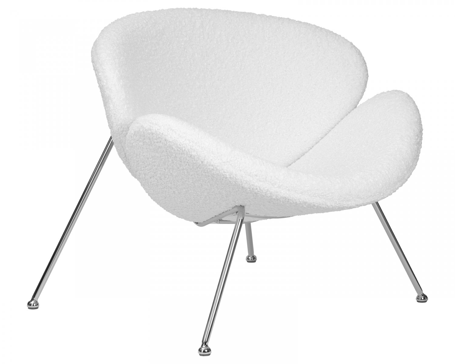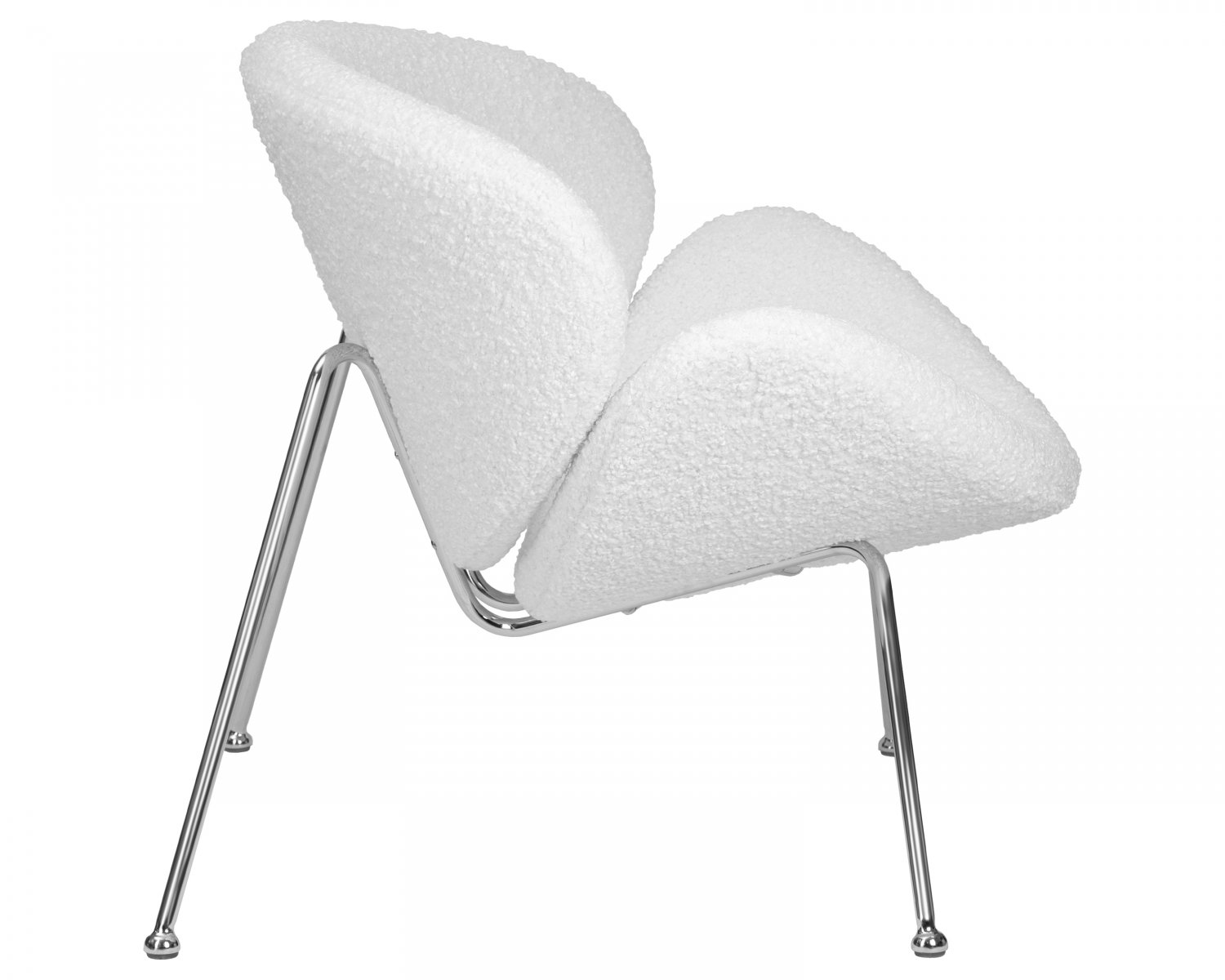 Кресло дизайнерское DOBRIN EMILY, белый (букле) ткань , хромированная сталь