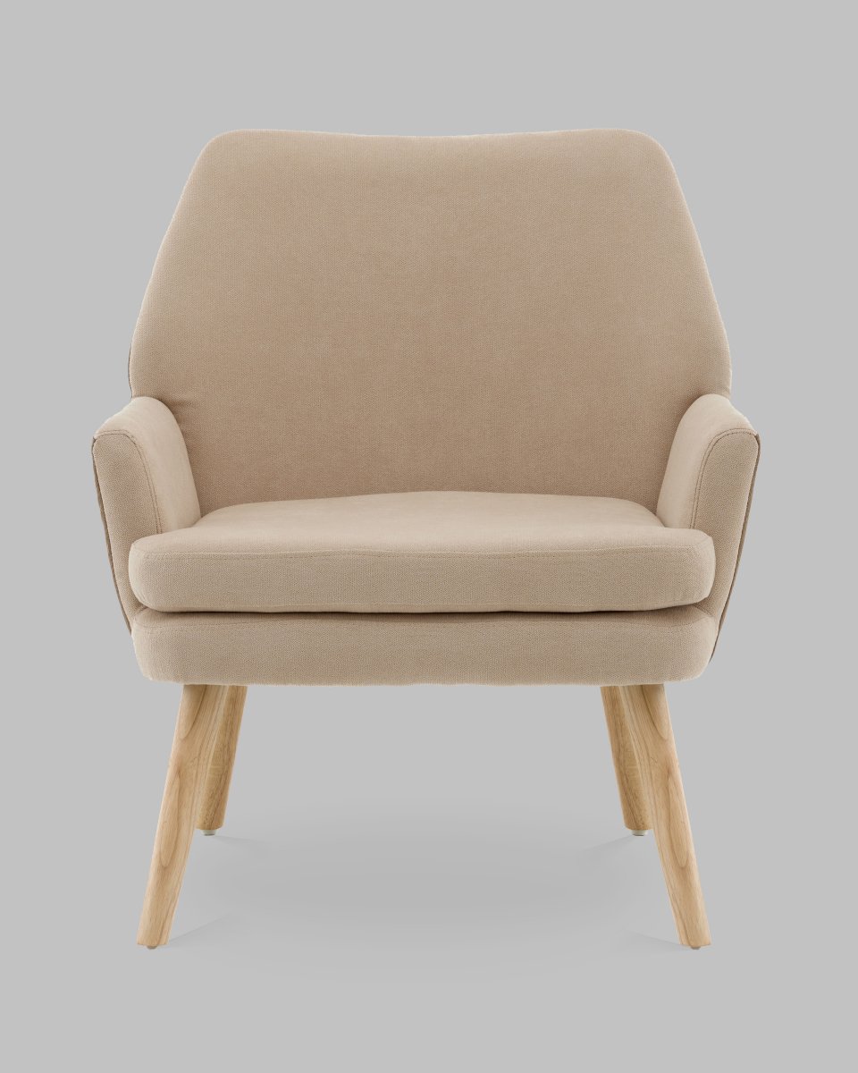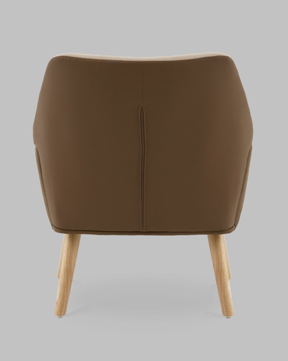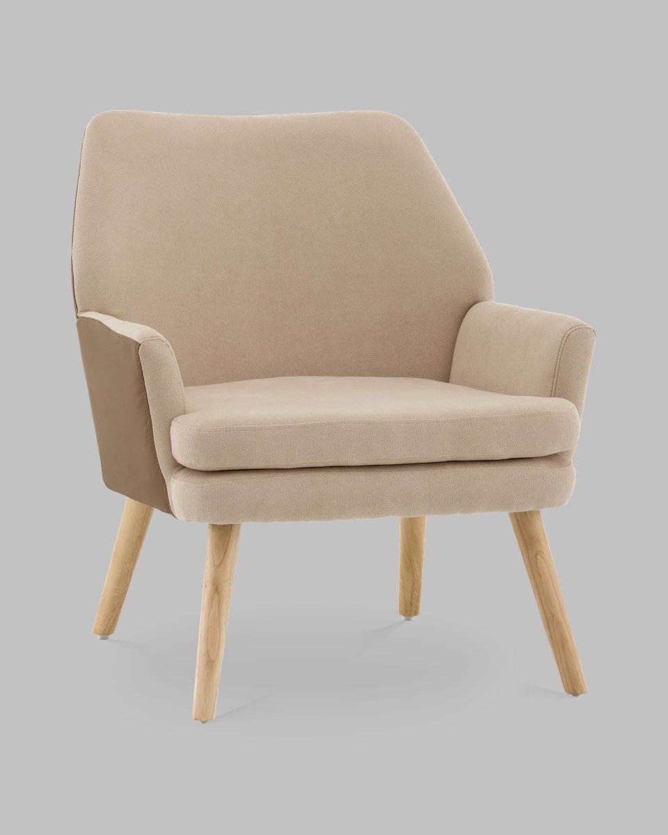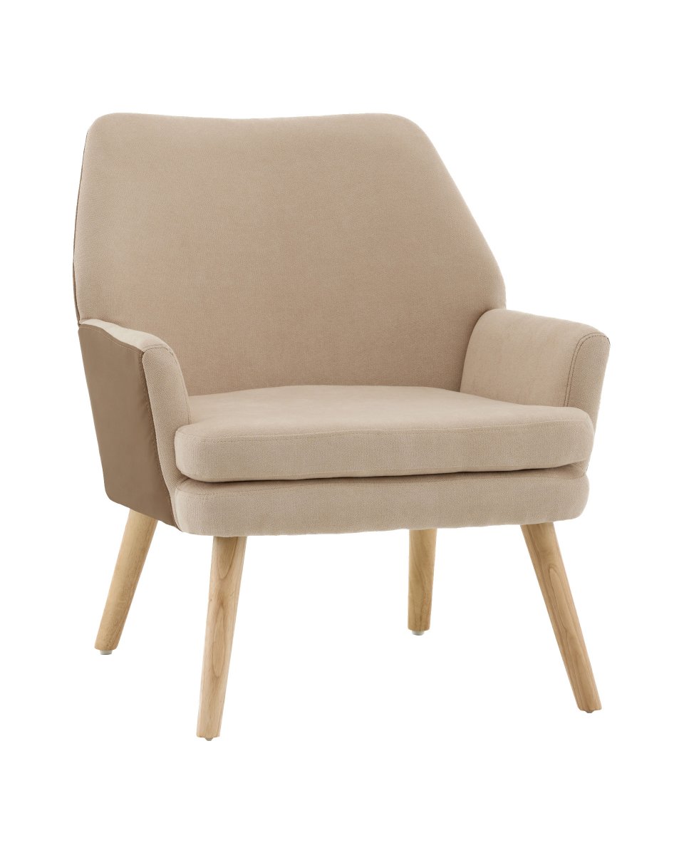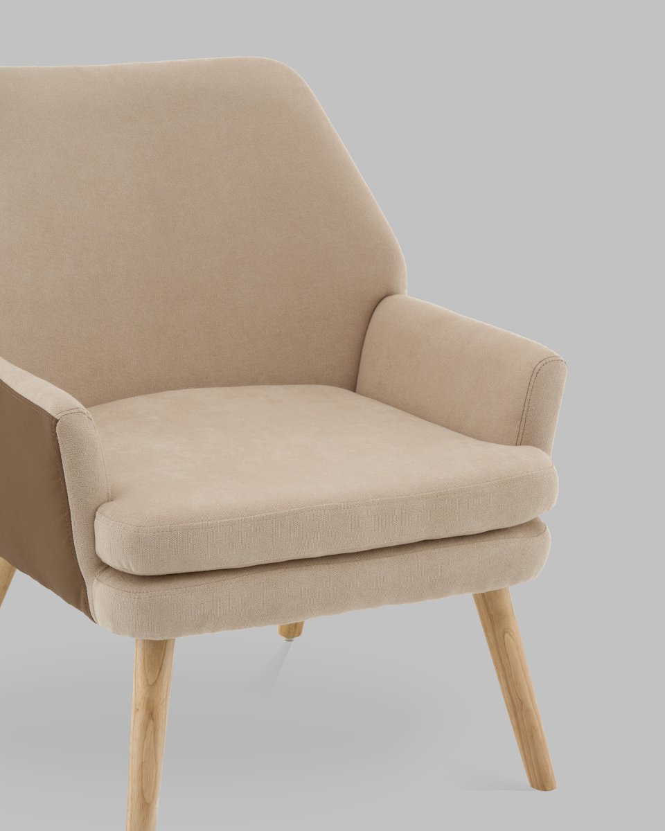 Кресло Харви бежевый с коричневой экокожей деревянные ножки