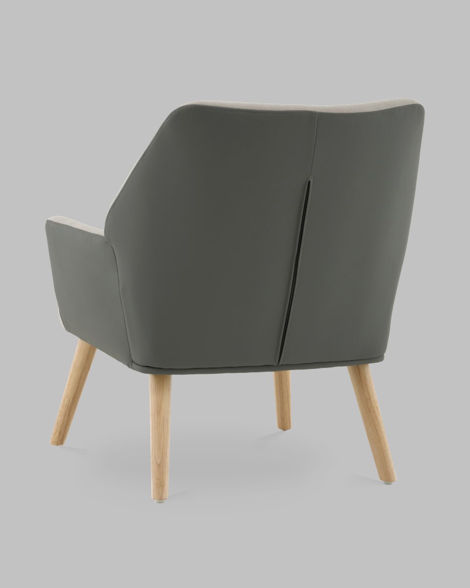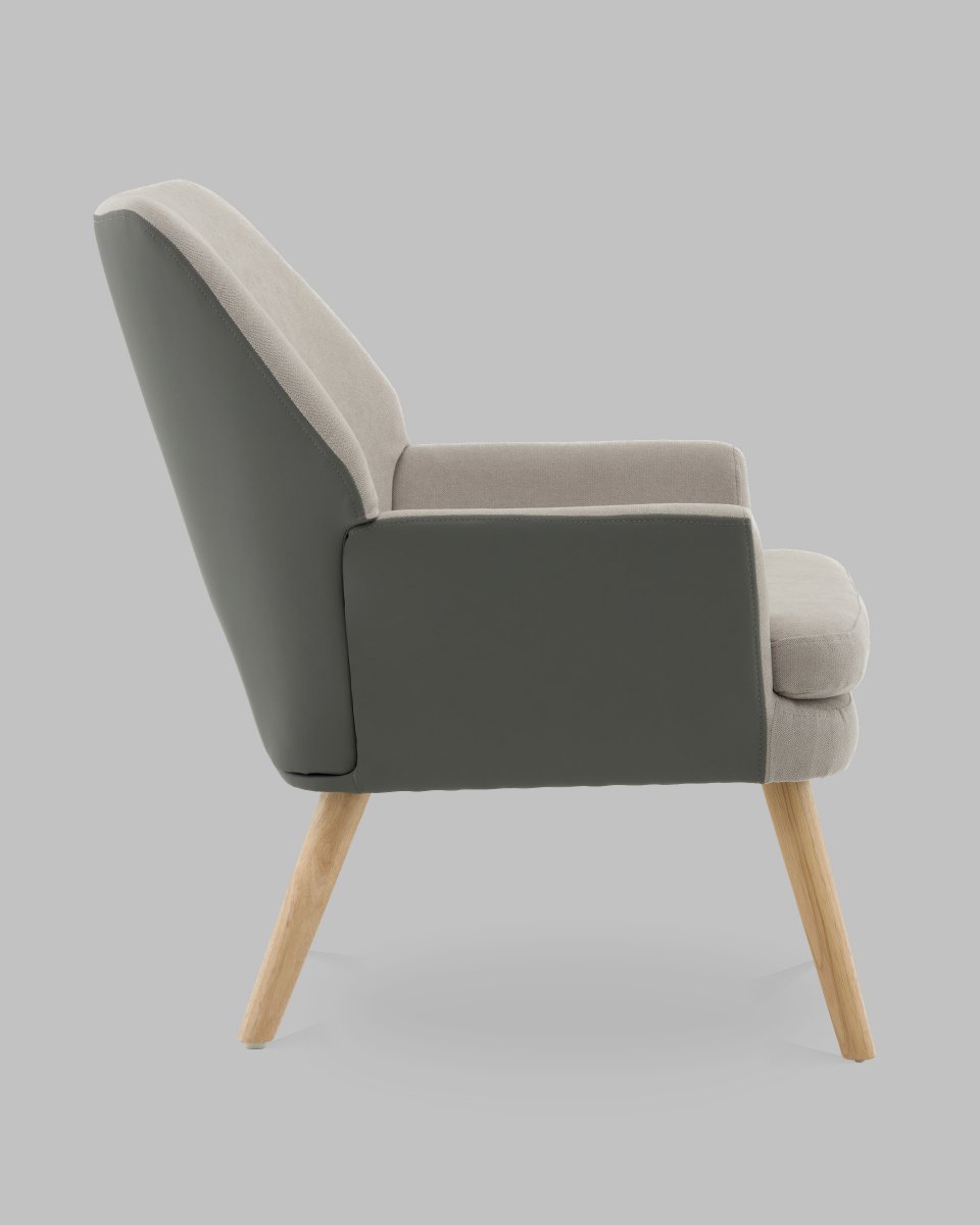 Кресло Харви серый с серой экокожей деревянные ножки