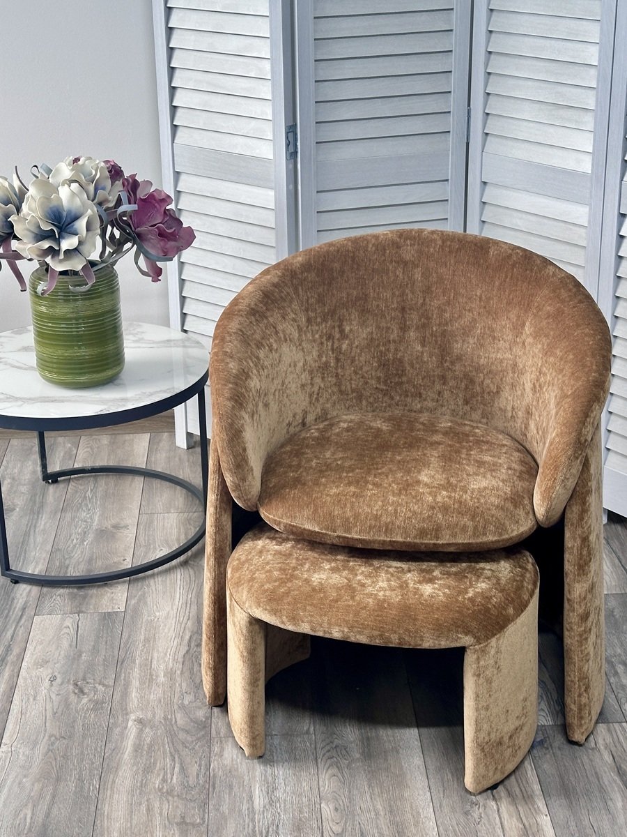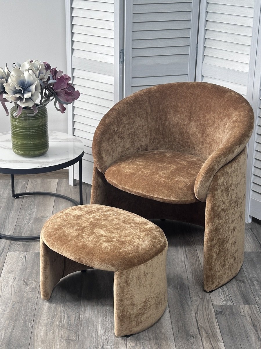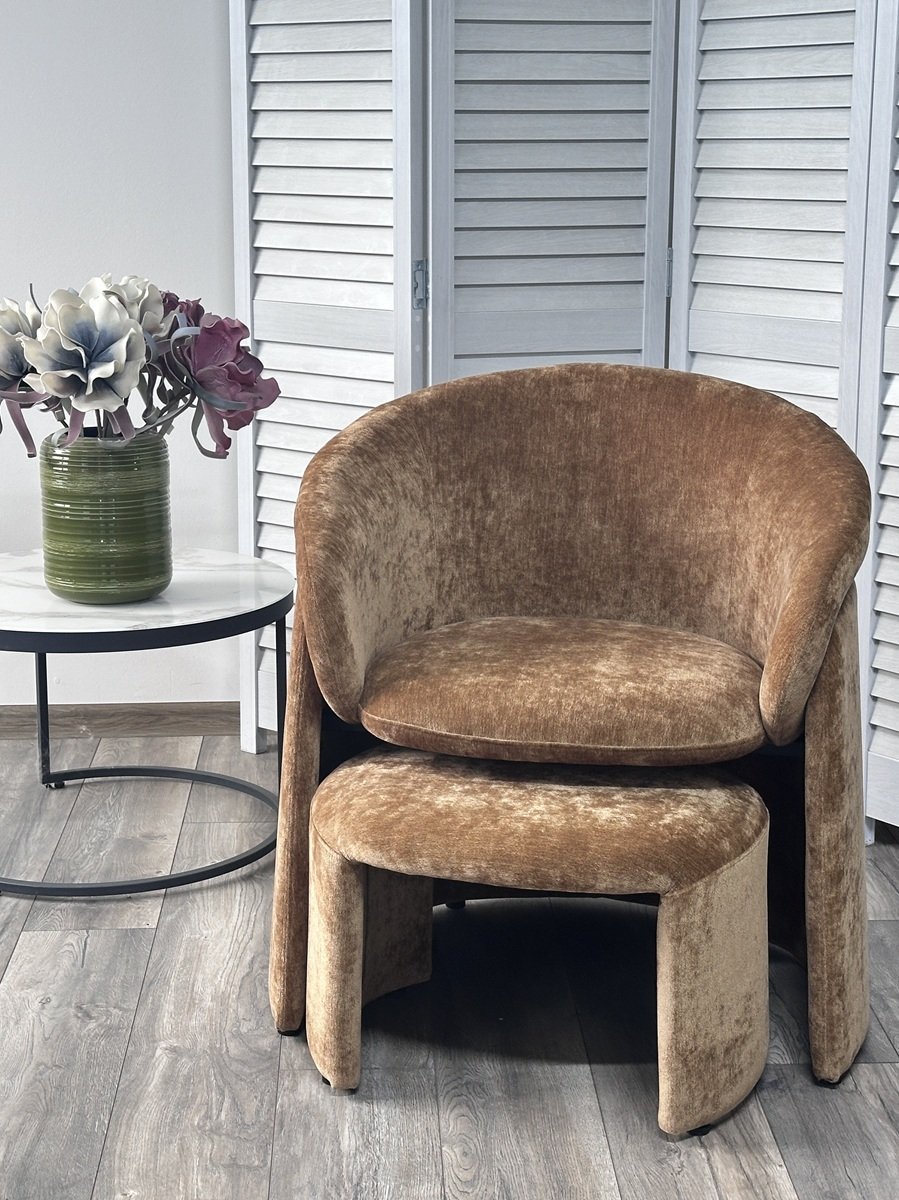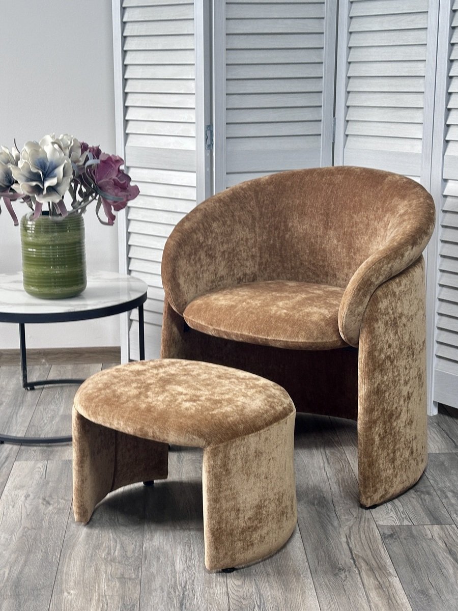 Кресло+оттоманка HUG AT5139-13 Коричневый, ткань/каркас металл в обивке AT5139-13 ®DISAUR