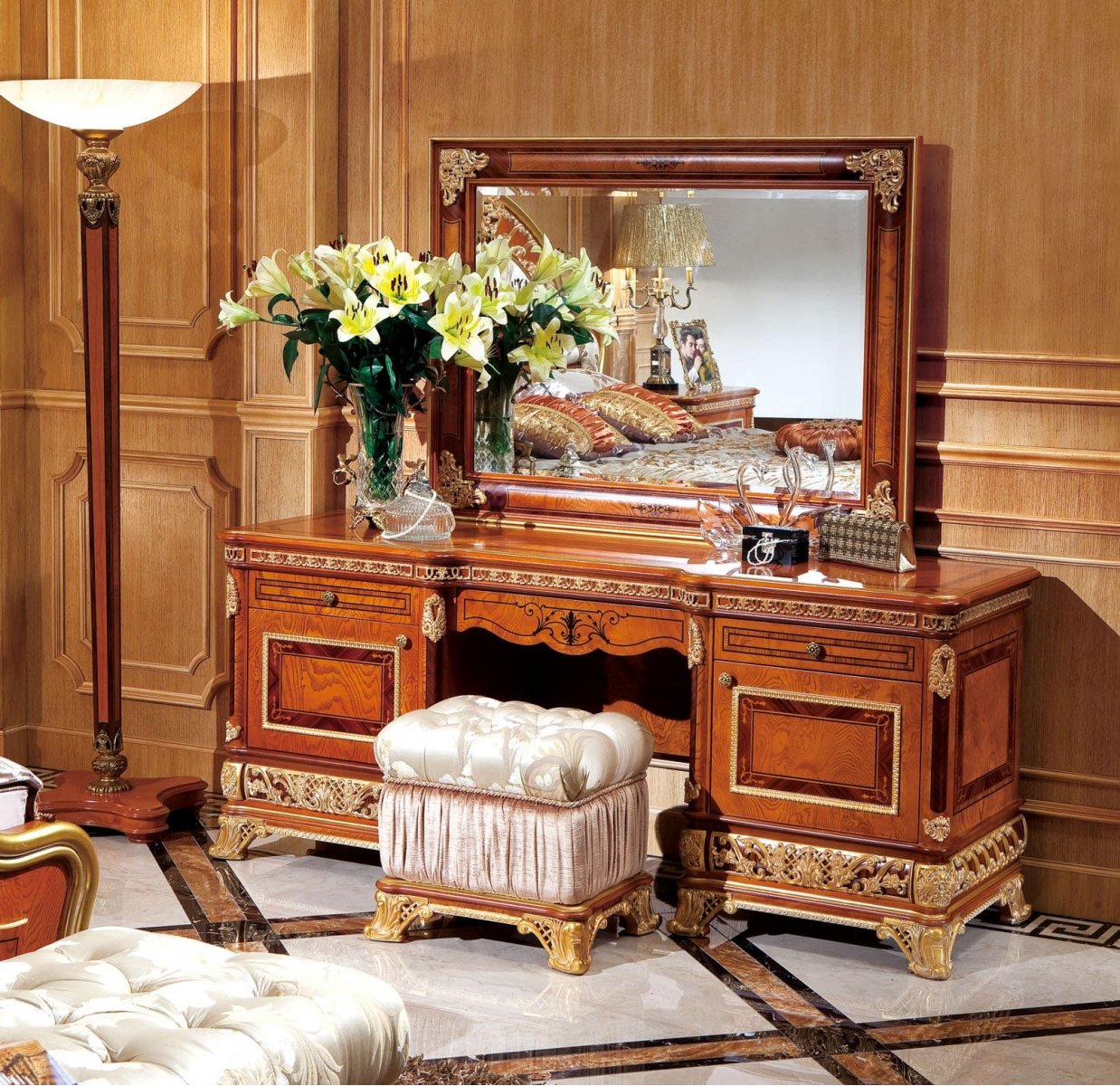 Е62 МОНАРХ ТУАЛЕТНЫЙ СТОЛИК с зеркалом, цвет-brown gold