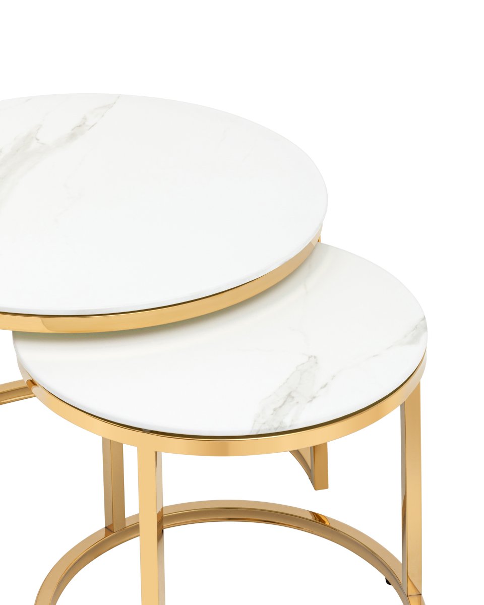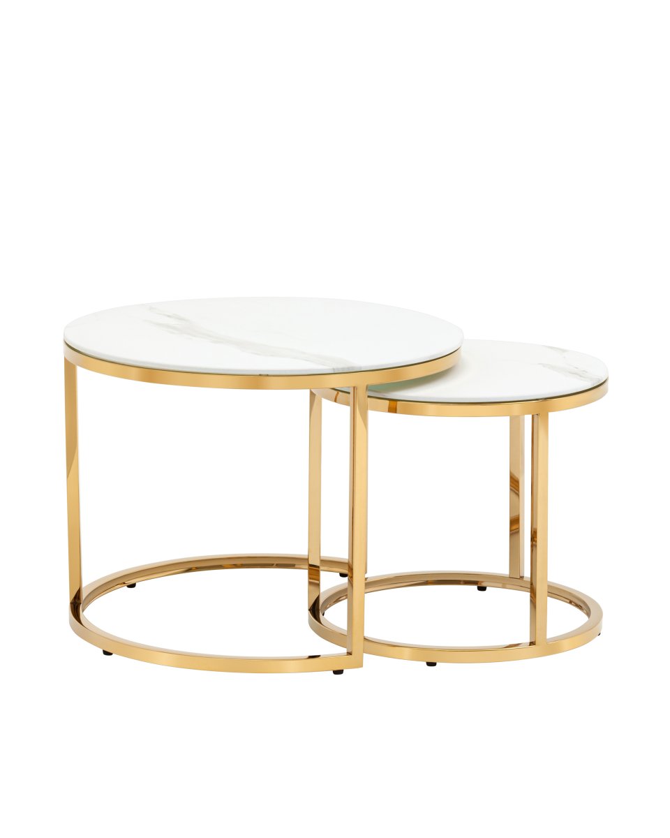 Набор журнальных столиков Селена 60 и 45 см стекло белый мрамор сталь золото