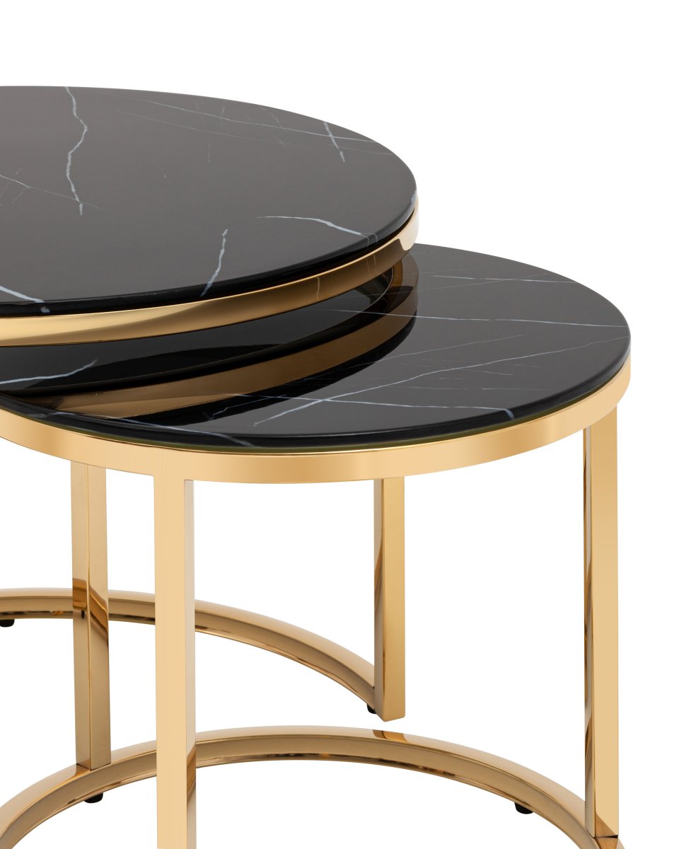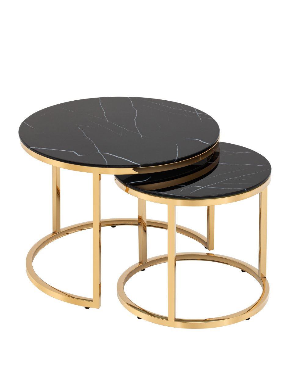Набор журнальных столиков Селена 60 и 45 см стекло черный мрамор сталь золото