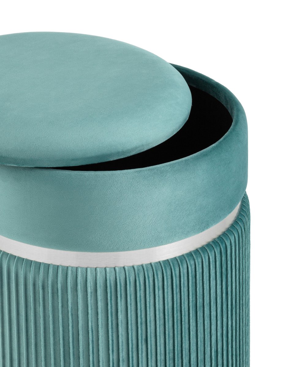 Пуф Миранда с ящиком серебро велюр светло-бирюзовый