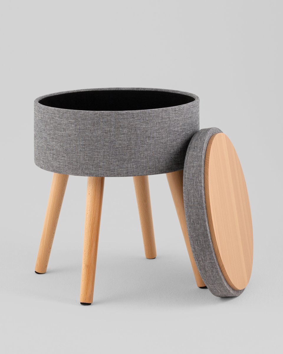 Пуф с ящиком Store Woody рогожка серая
