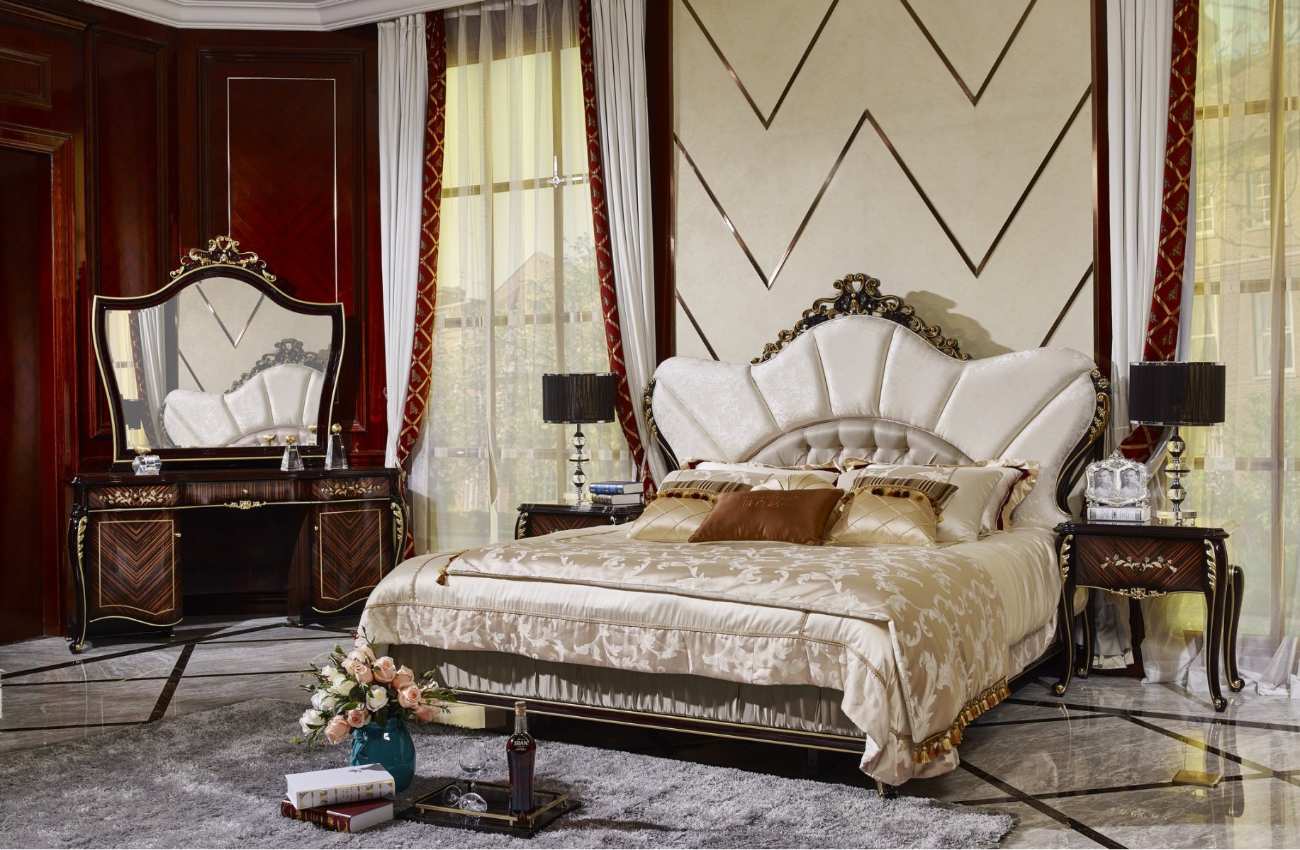 РИЧМОНД Комплект Кровать 1,8 + 2 Тумбочки + Туалетный стол + Пуф + 6 дв. Шкаф