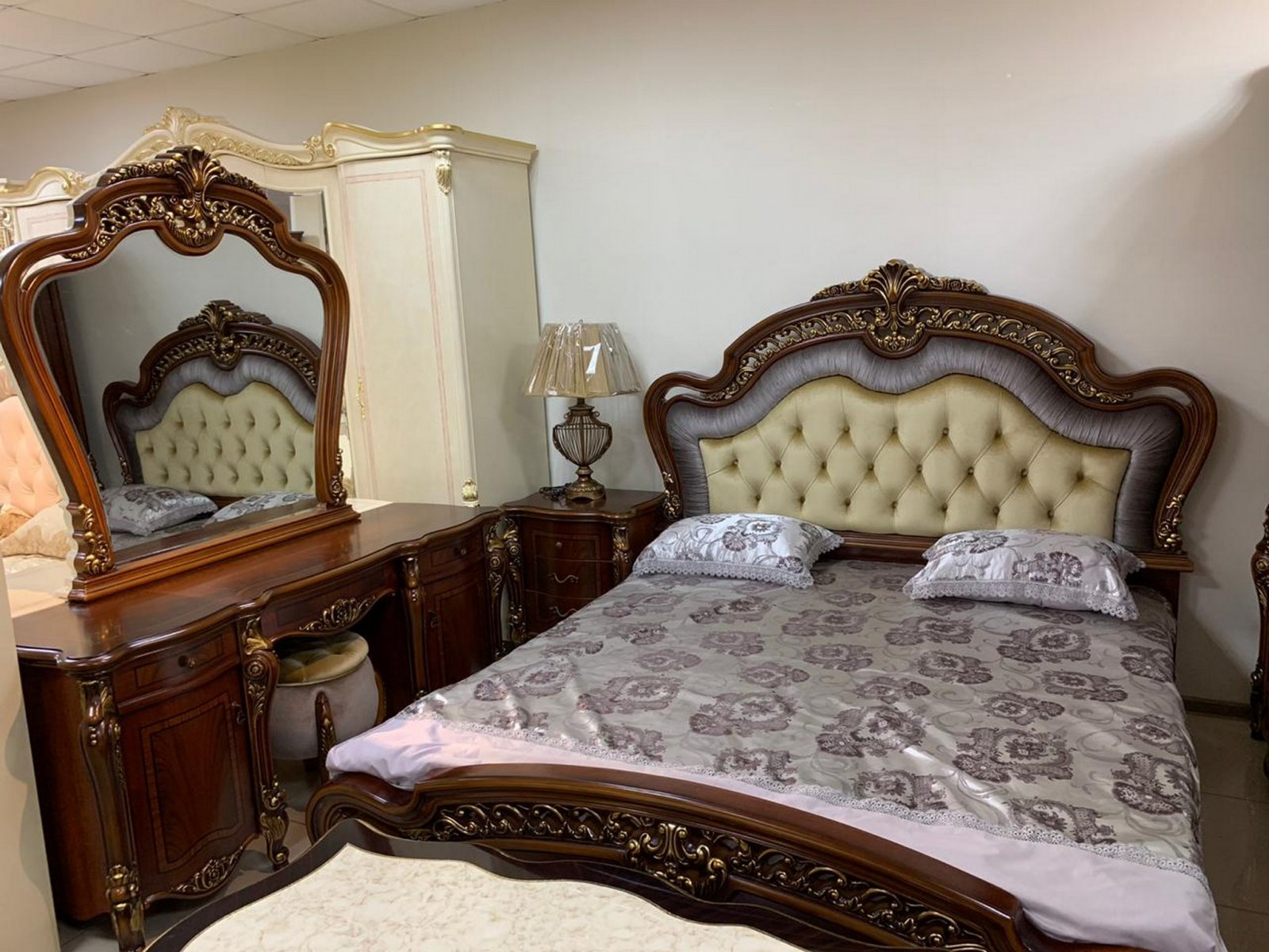 РОМЕО КОМПЛЕКТ : Кровать 1,8 + 2 Тумбочки + Туалетный стол + Пуф + 4 дв. Шкаф