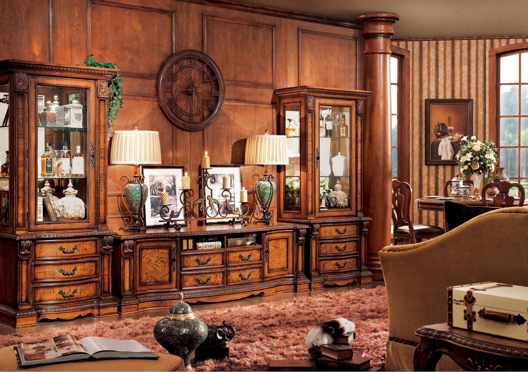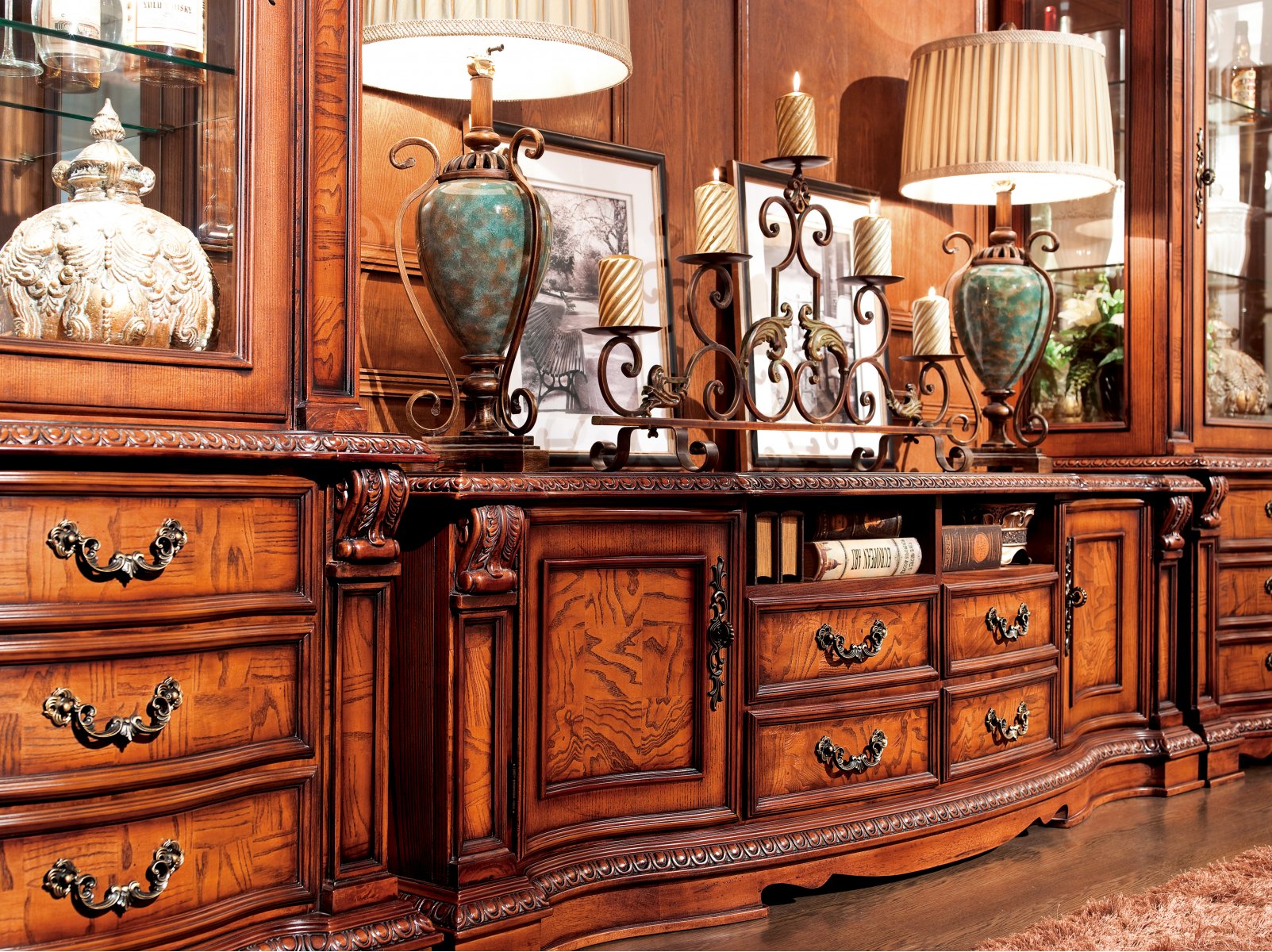 Мебель выполнена из массива дуба и шпона ясеня