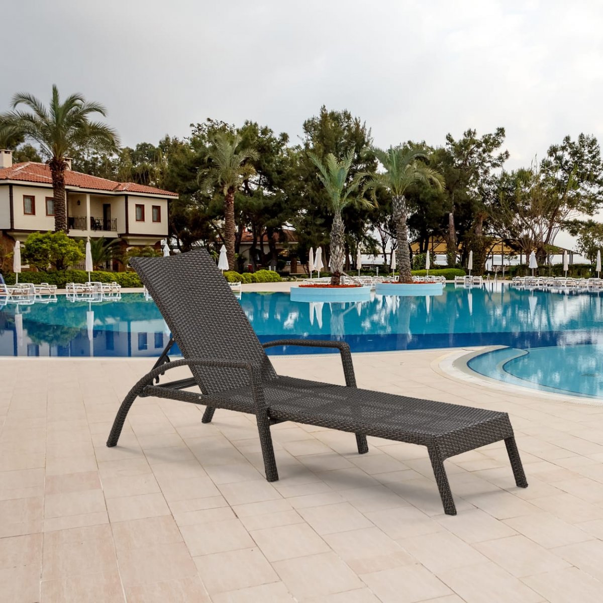 Размер: L200xH91xW70 см. Материал: искусственный ротанг. Каркас: сталь. 5 положений спинки. Вес: 15 кг. Допустимая нагрузка: 180 кг. Цвет: Brown.