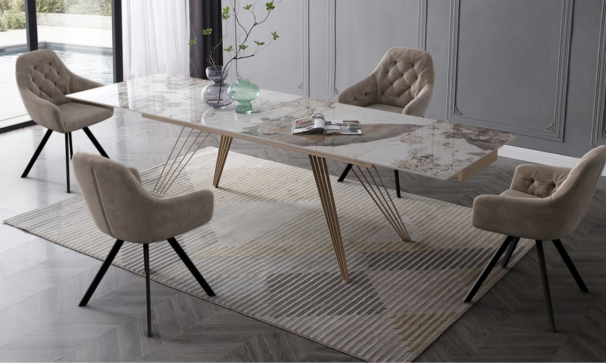 Стол ACERRA NEW 160 GLOSS LUXURY PANDORA SOLID CERAMIC/ каркас цвета шампань, ®DISAUR