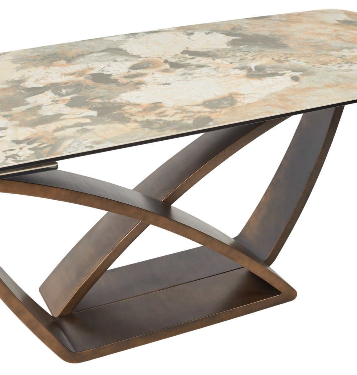 Стол ALONSO 200 TL-137 матовый, испанская керамика / брашированный каркас, цвет медный, ®DISAUR