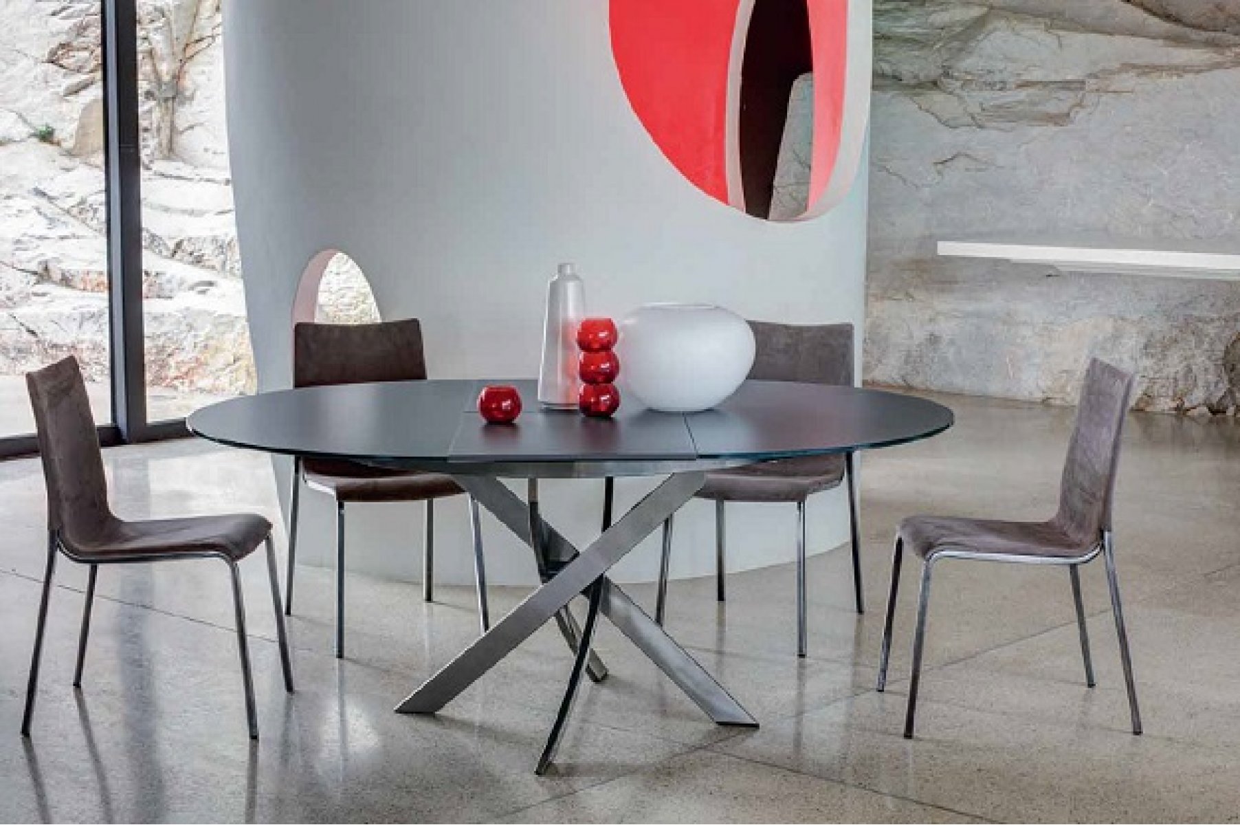 Стол BARONE (01.92) G093 хром/С150 э-бел. гл. стекло, L021алюм.вставка АКЦИЯ!!!