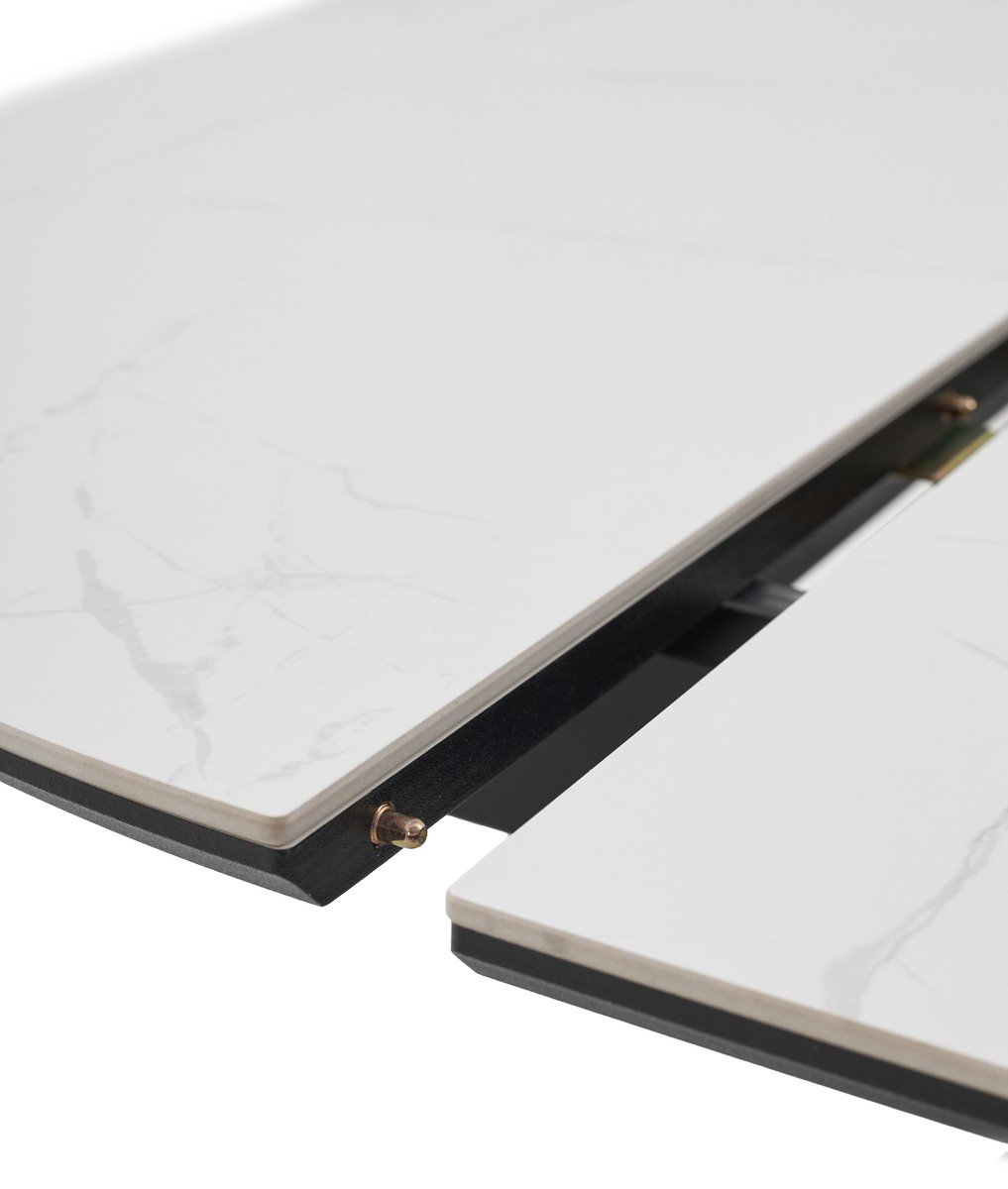 Стол БОНЖУР 100 БЕЛЫЙ МРАМОР, керамика / ЧЕРНЫЙ каркас М-City