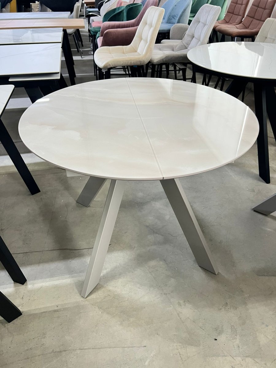 Стол БОНЖУР 100 ОНИКС БЕЖЕВЫЙ, стекло / ЛАТТЕ каркас М-City