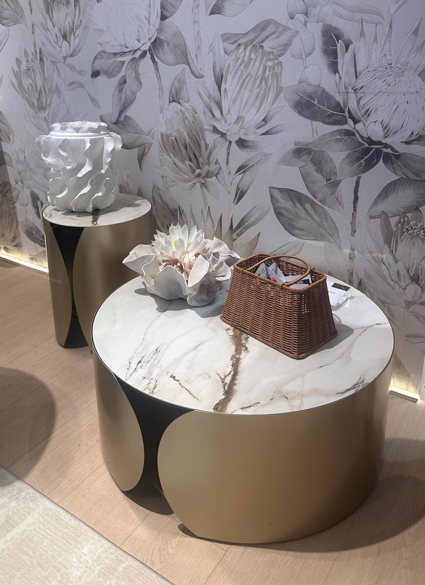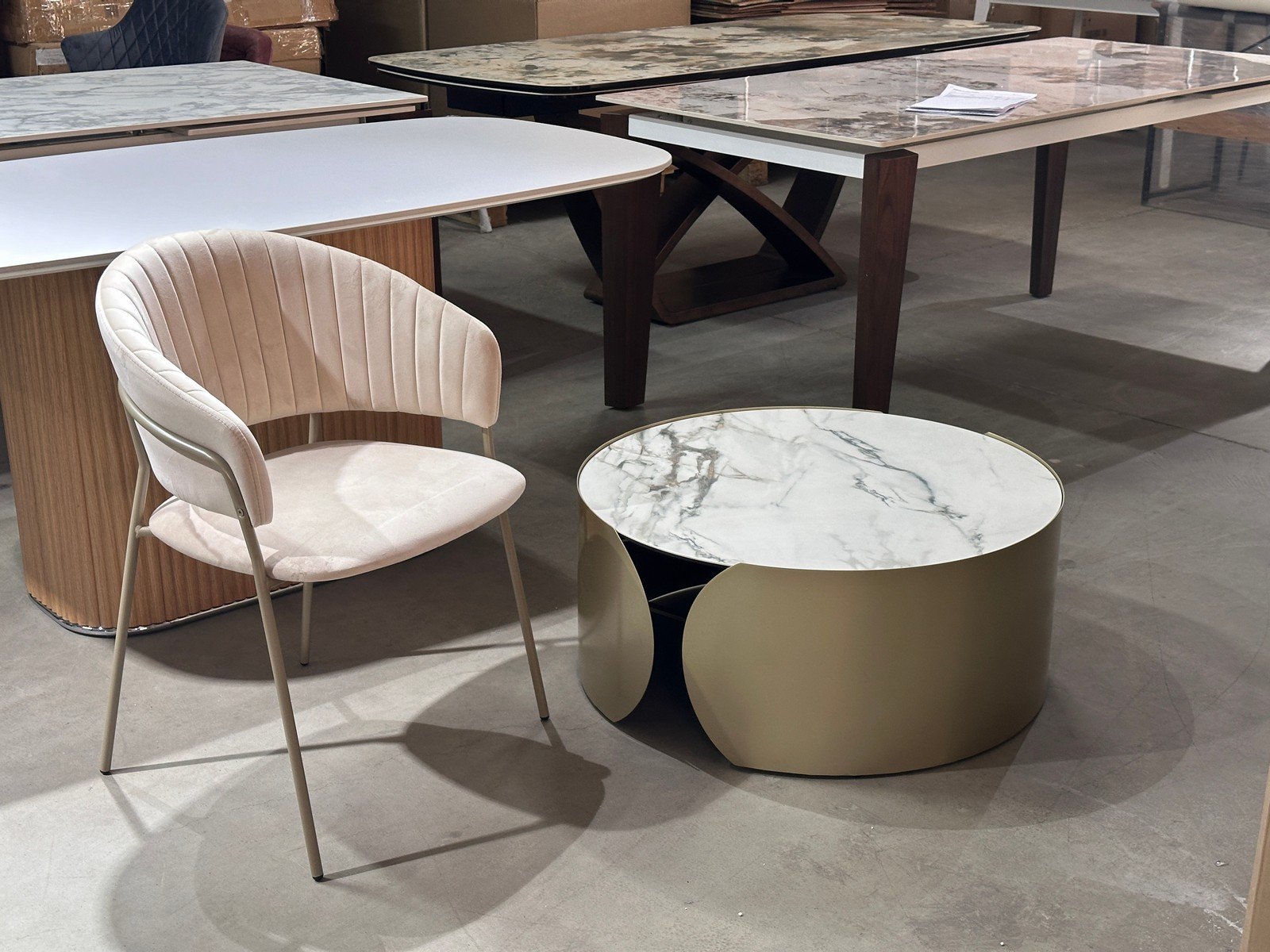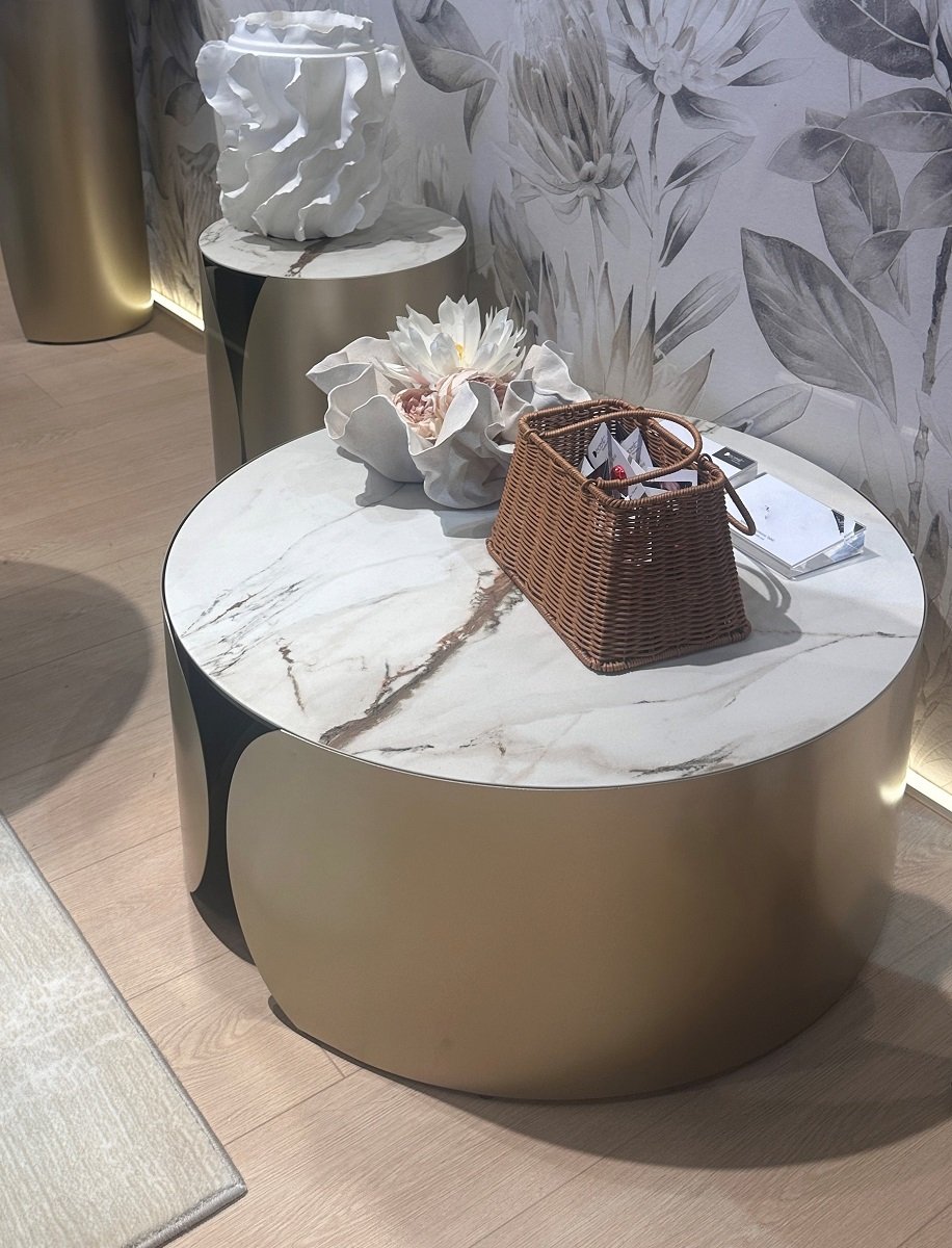 Стол журнальный BRANT KL-188 Контрастный мрамор матовый, итальянская керамика/ Шампань, ®DISAUR
