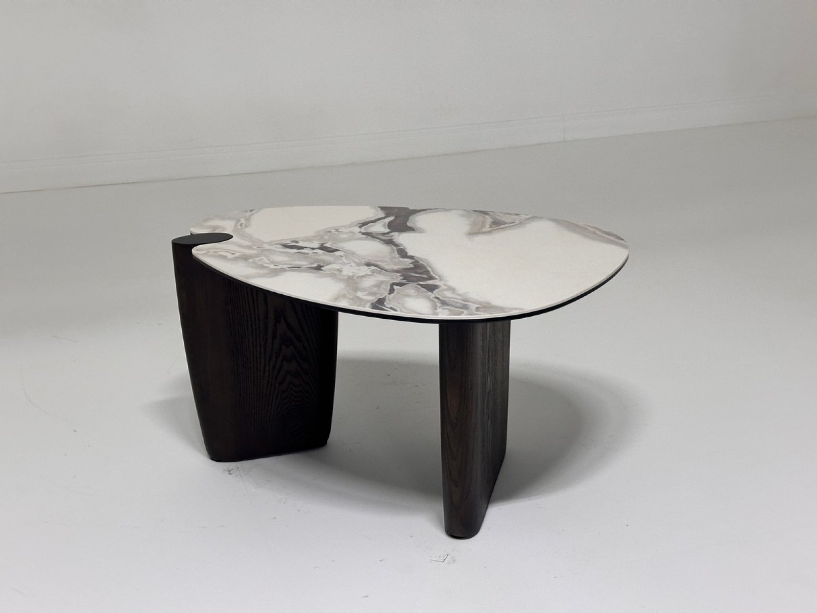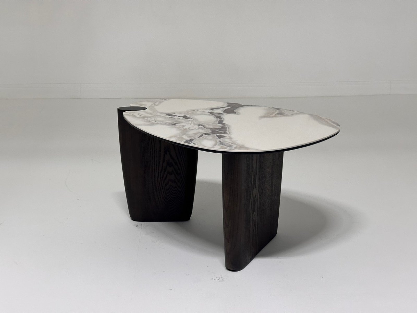 Стол кофейный DAG FENDI WHITE керамика на стекле/массив/ МДФ, облицованный дубовым шпоном ®DISAUR