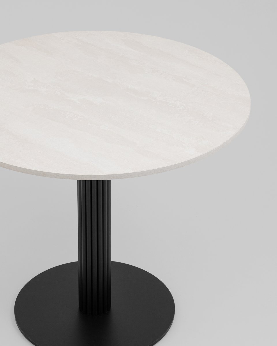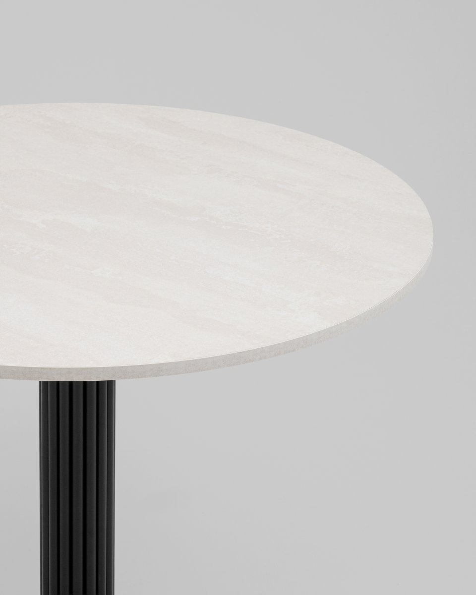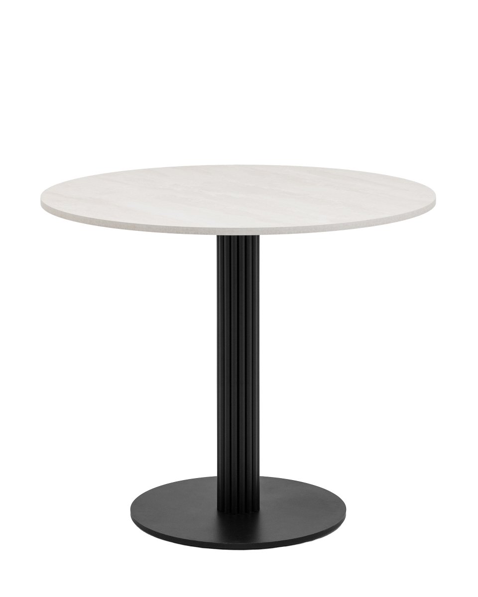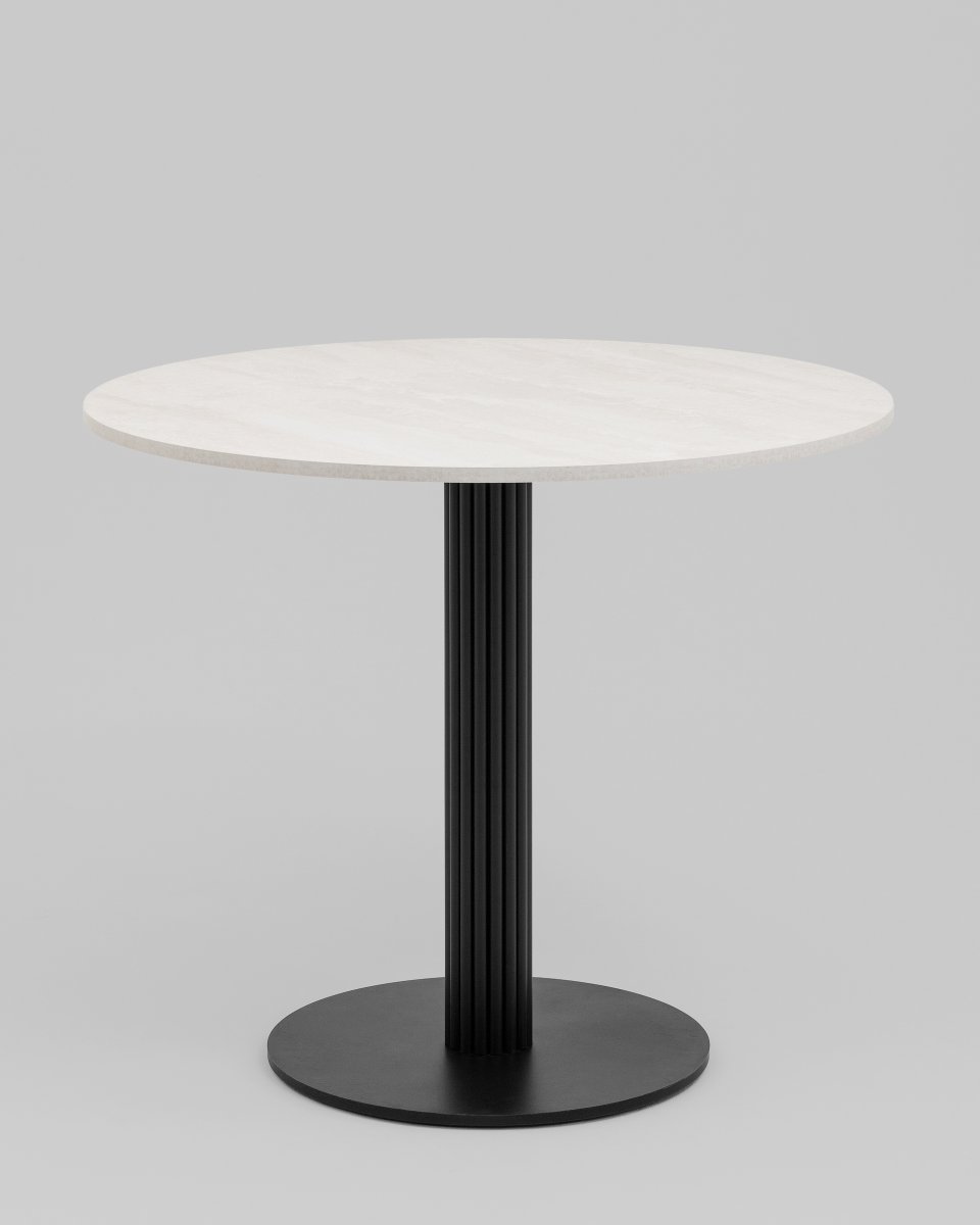 Стол круглый Фризбин D90, столешница МДФ ледяной камень, основание металл черный