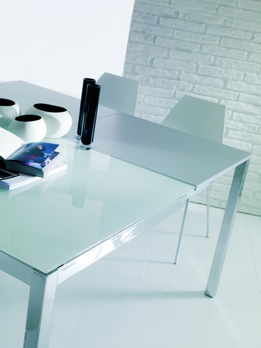 Стол MAGO (01.34) 100/140*70*Н75 см (G093/ G093/ С150 э-бел.глянц.стекло+L072 ал)