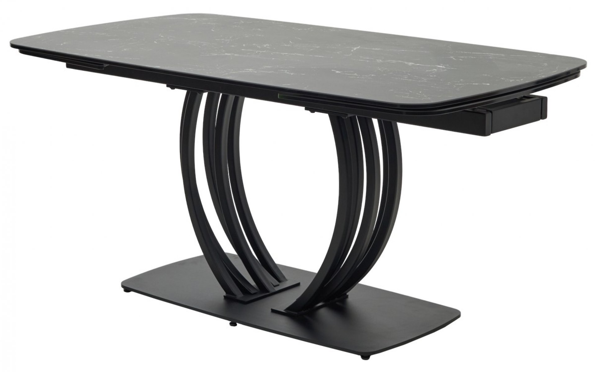 Стол MATERA 160 NERO KL-116 Черный мрамор матовый, итальянская керамика/ черный каркас М-City