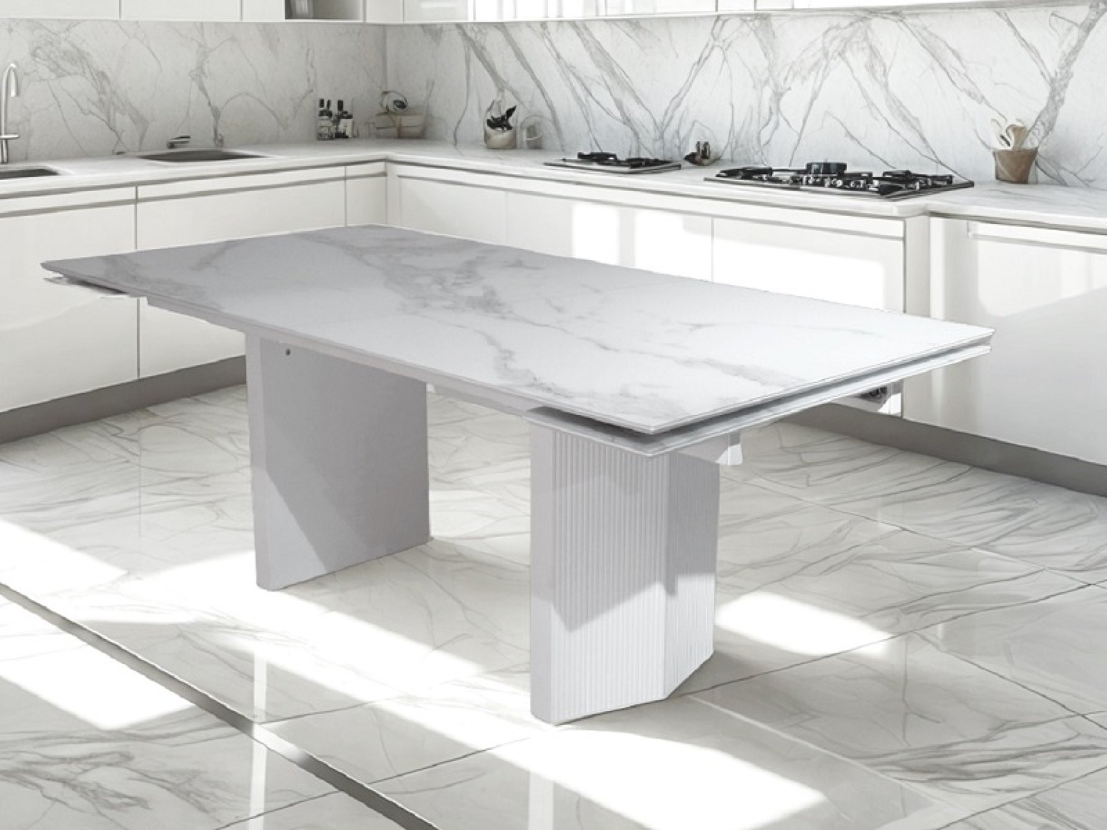 Стол МОЦАРТ 200 Белый мрамор, стекло / Белый М-City