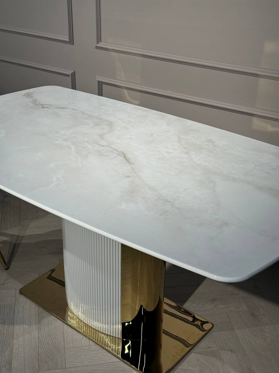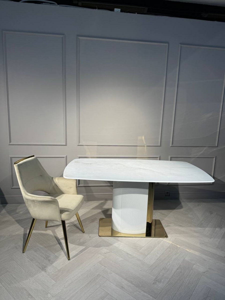 Стол обеденный Барнео BS1802-160GR, 160х90х76 см, светло-серый/золото