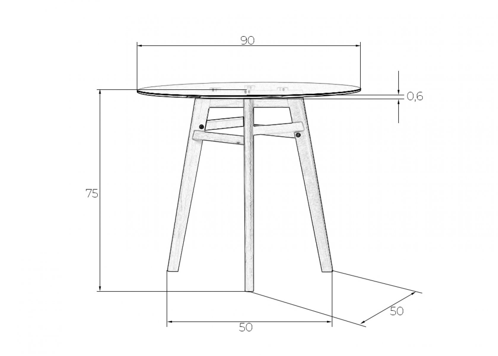 Стол обеденный DOBRIN HENRY`90 GLASS, столешница стекло, деревянное основание
