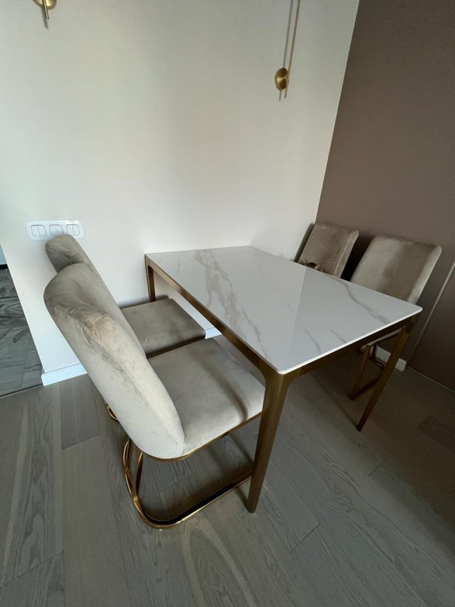 Стол обеденный Камео DT-3001S, 120х80х76 см, белый мрамор (Калаката)
