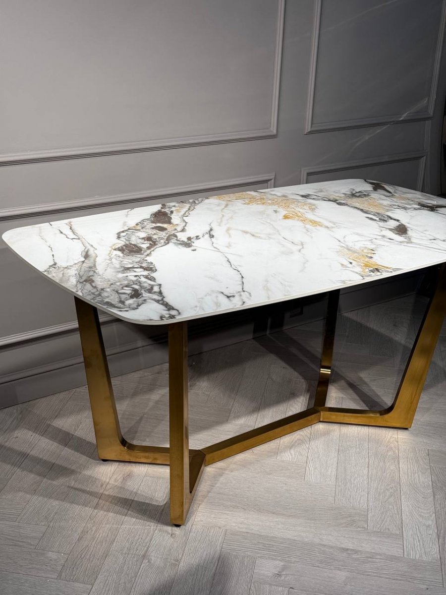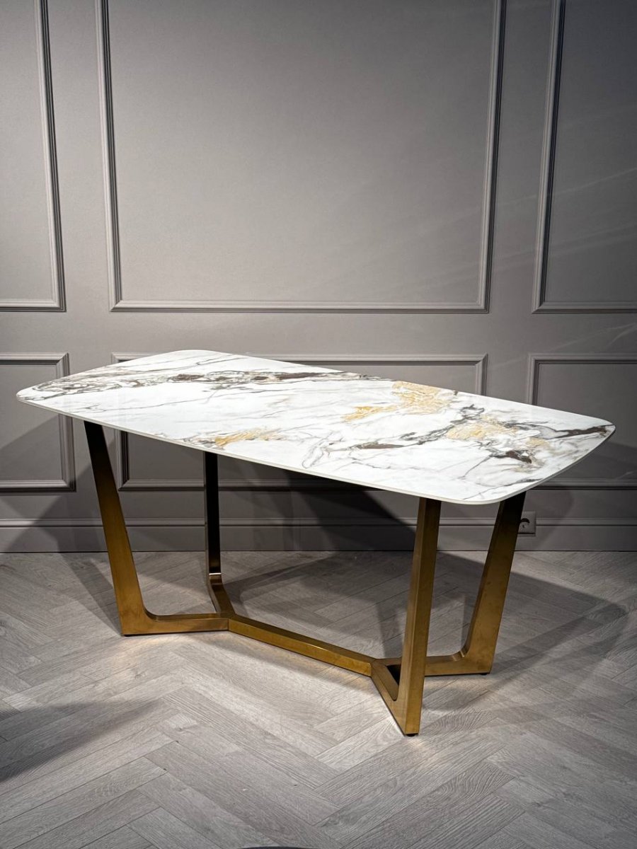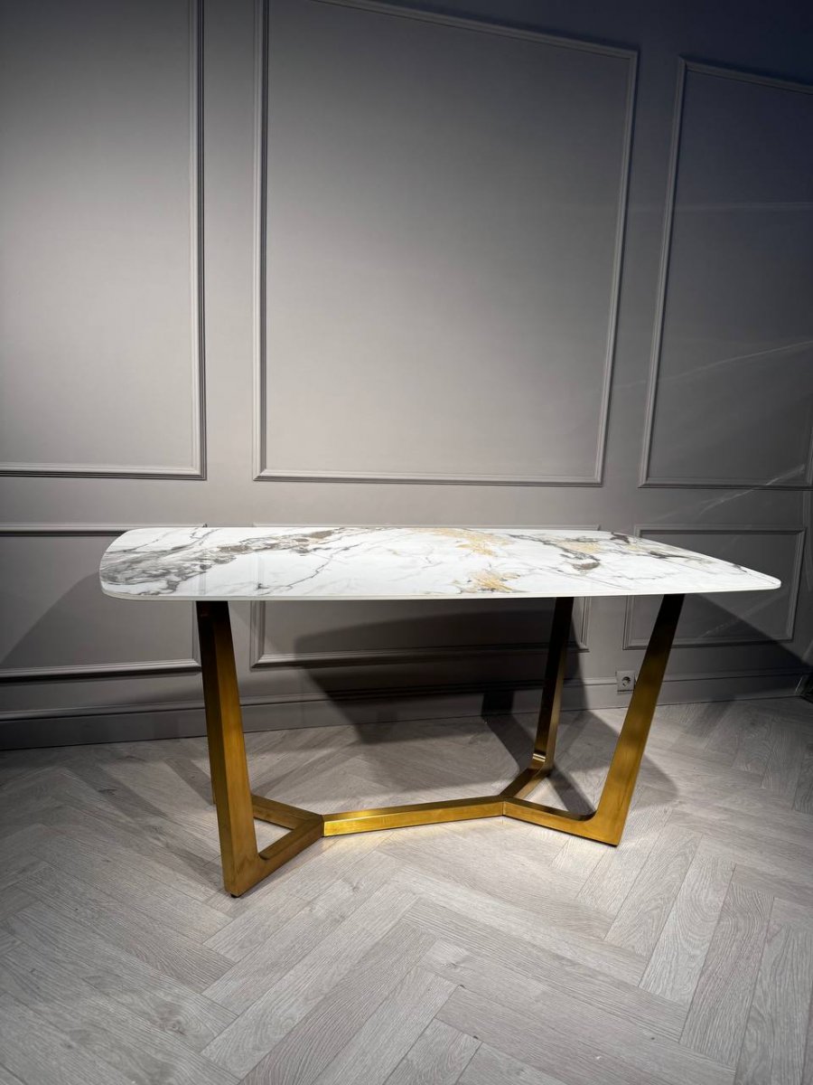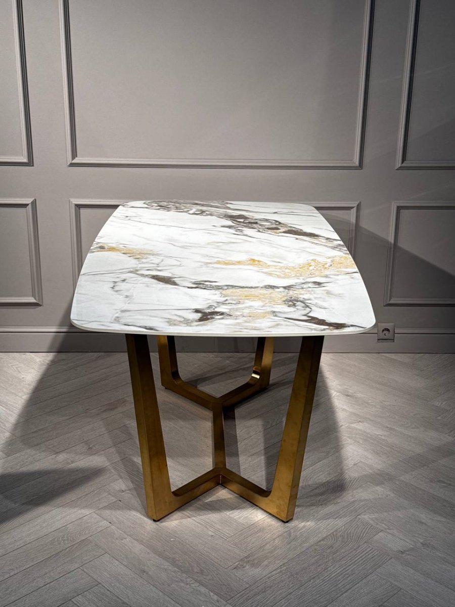 Стол обеденный Ланс Мат DT-2852L,180х90х75 см, белая керамика/матовое золото