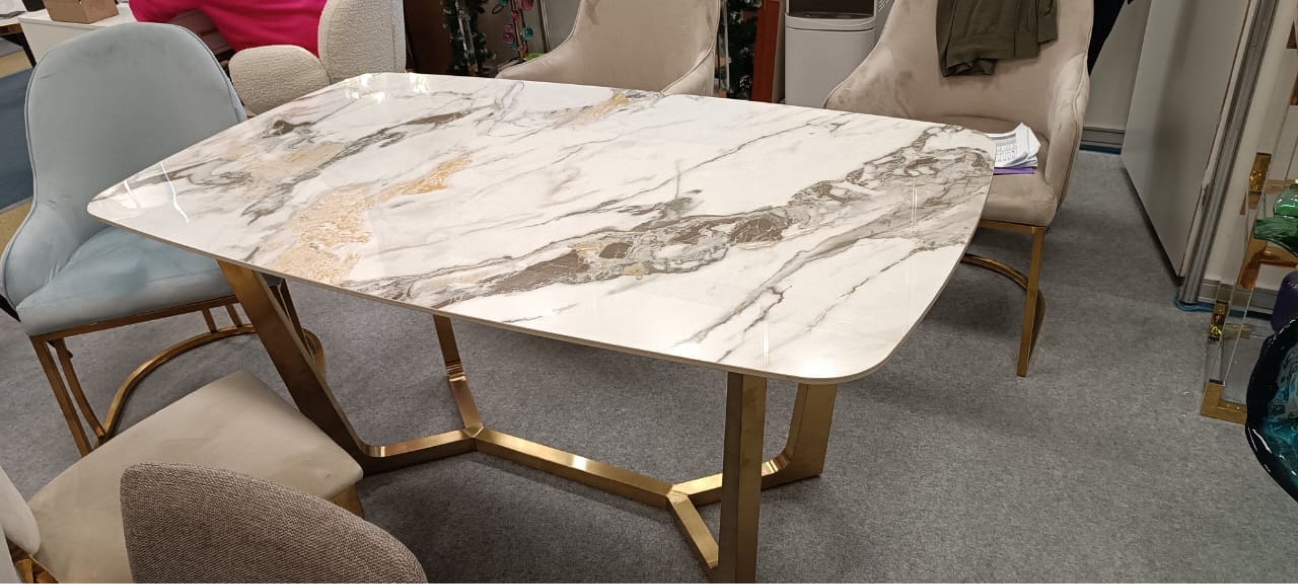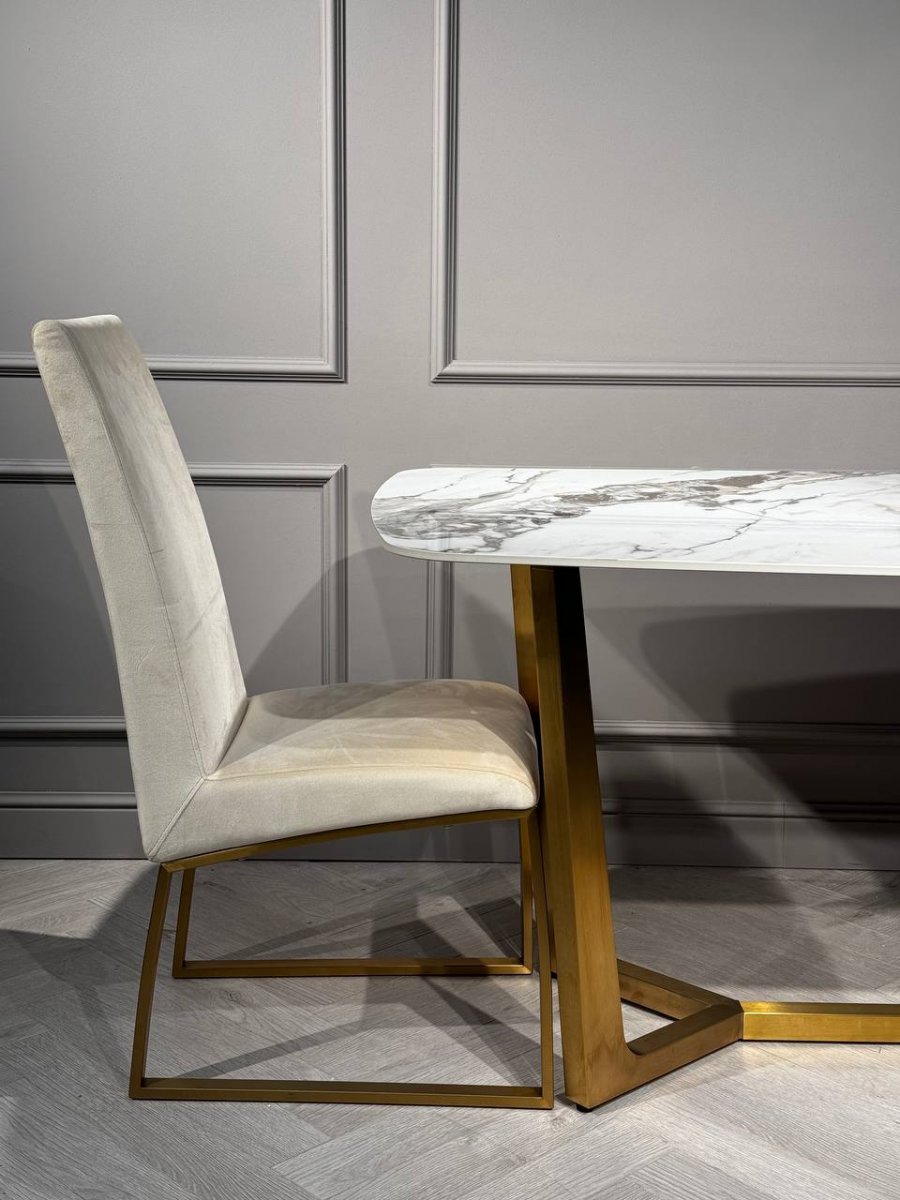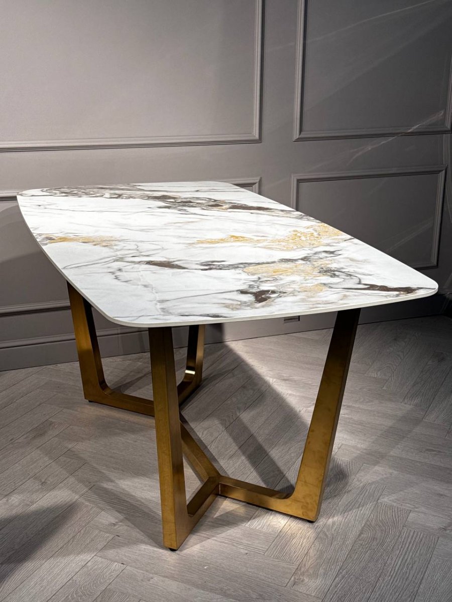 Стол обеденный Ланс Мат DT-2852L,180х90х75 см, белая керамика/матовое золото