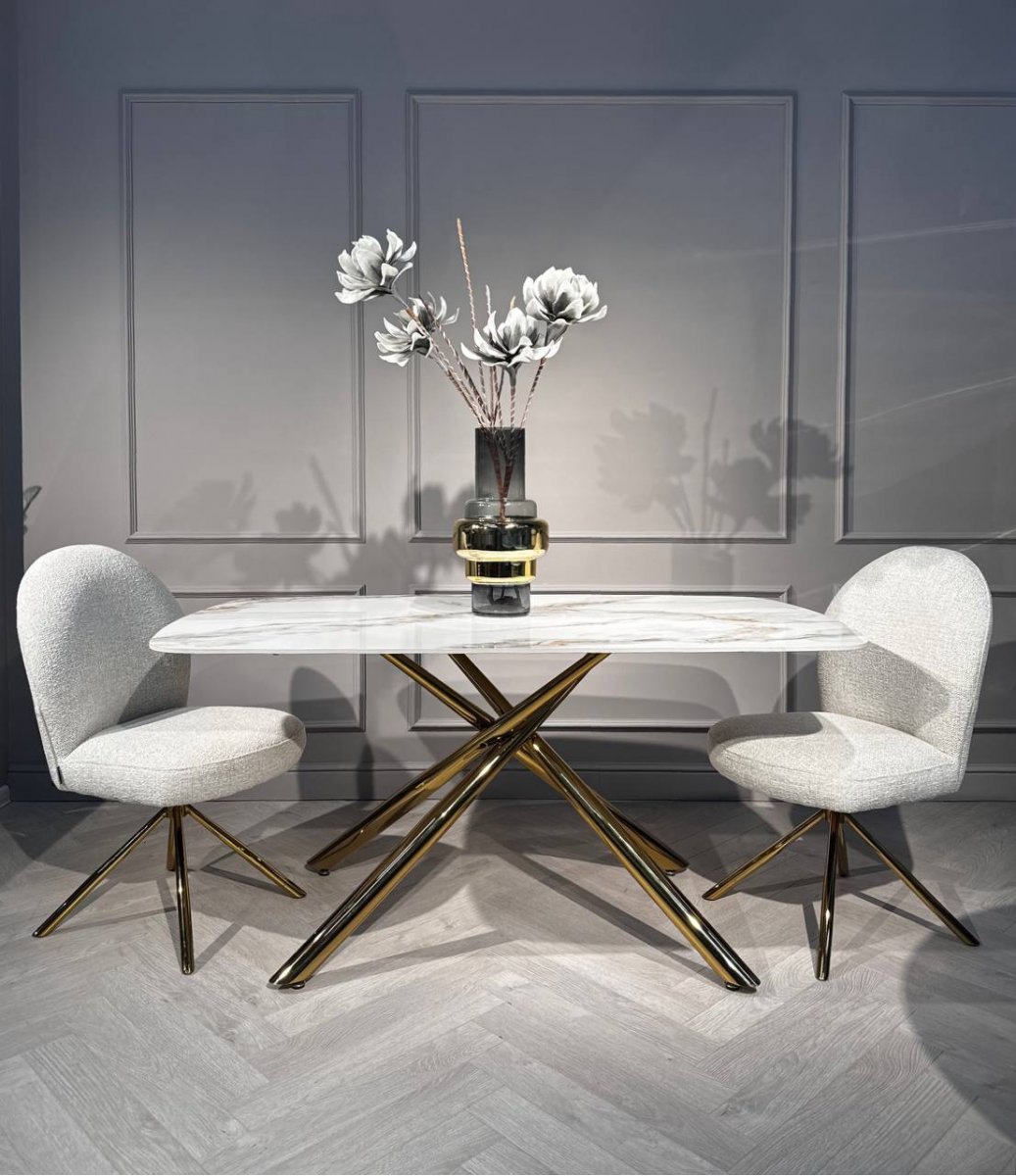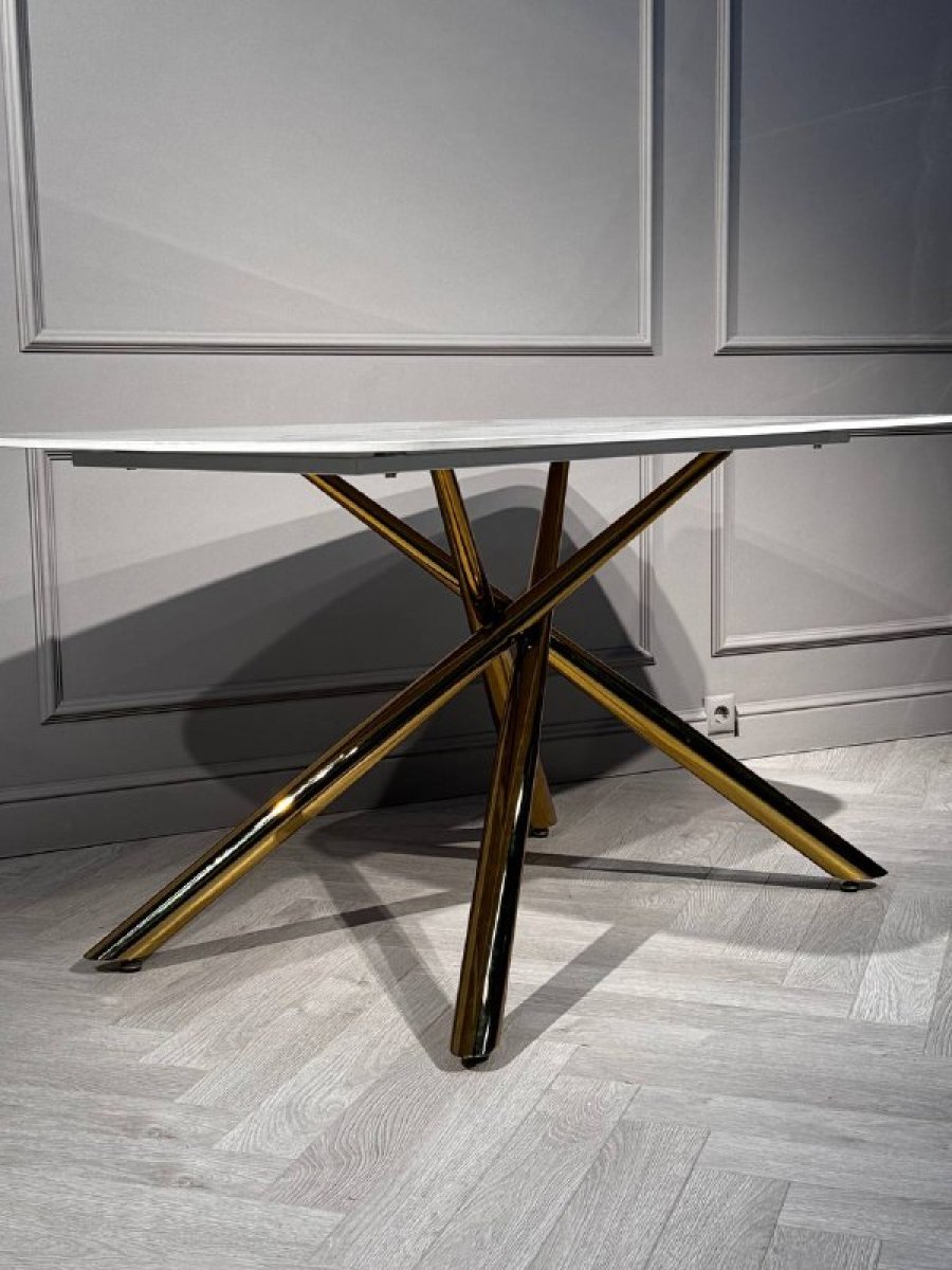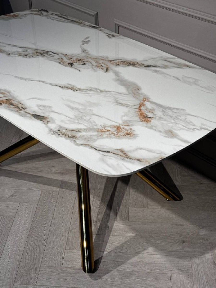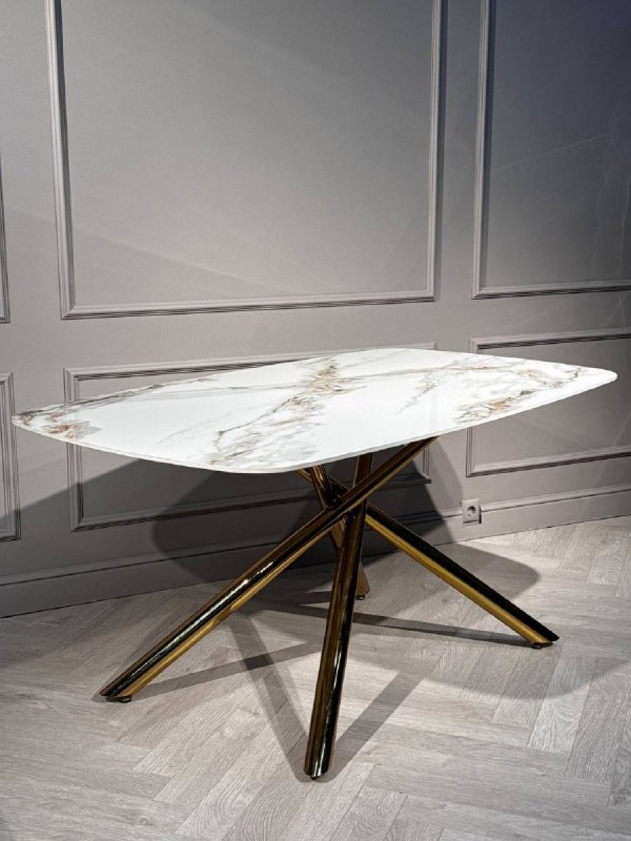 Стол обеденный Неаполь Голд TW1162-T-1,160x90x76 см, серо-золотая керамика/золото