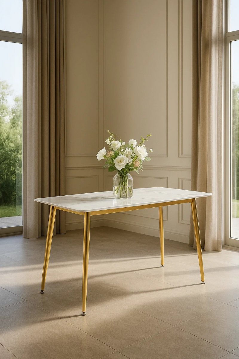 Стол обеденный Рио Голд DT-2849, 160х90х76 см, белый мрамор Статуарио/глянцевое золото