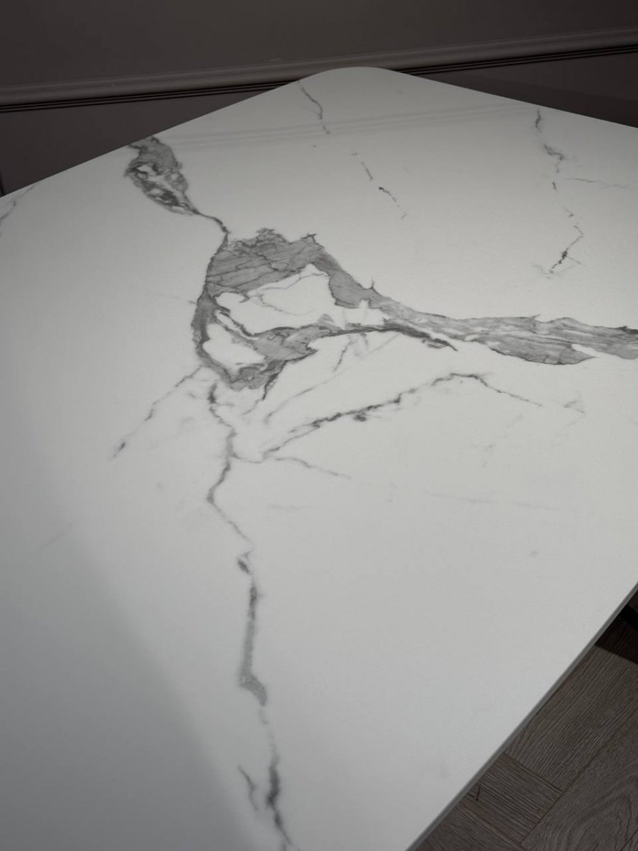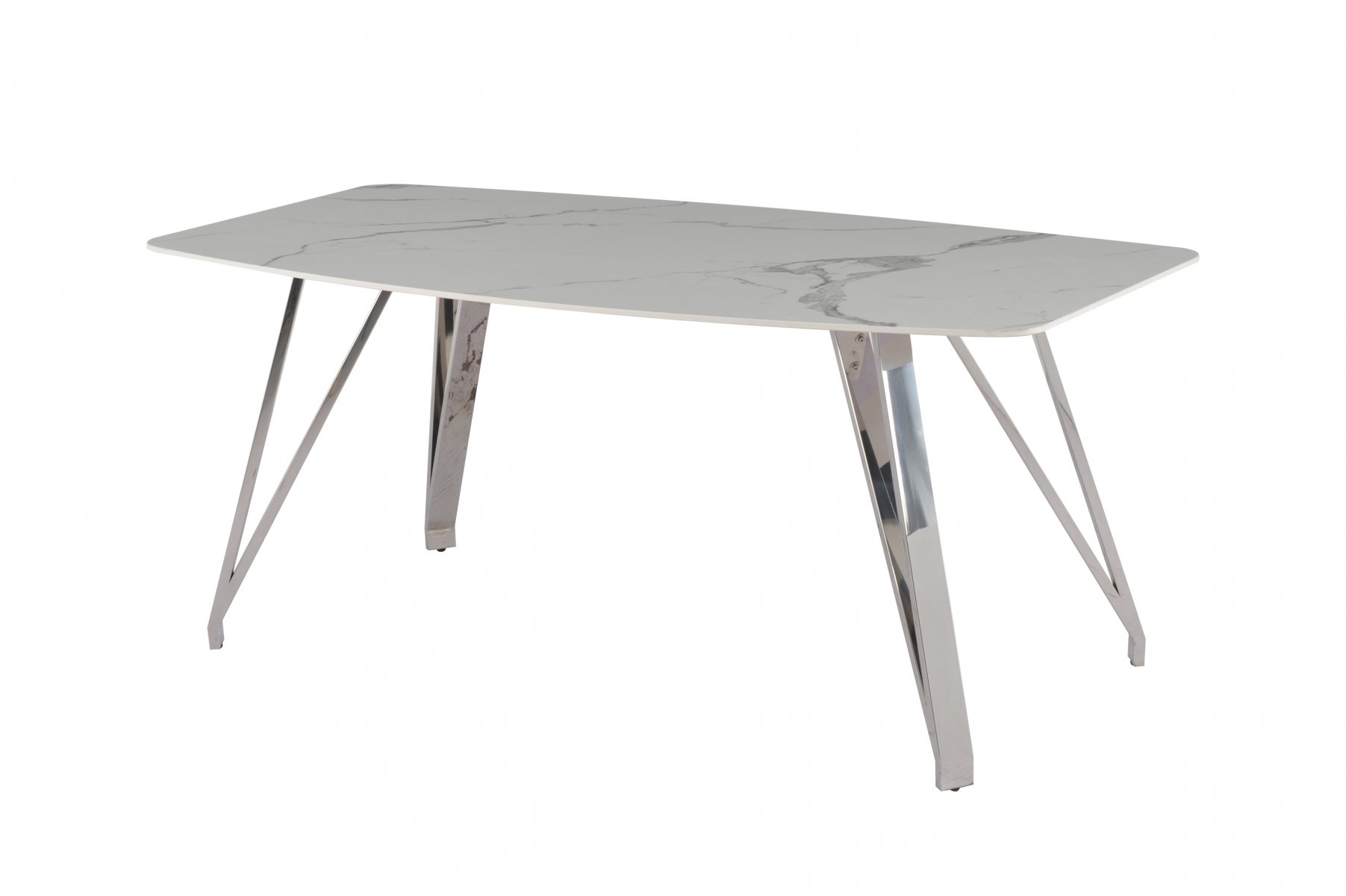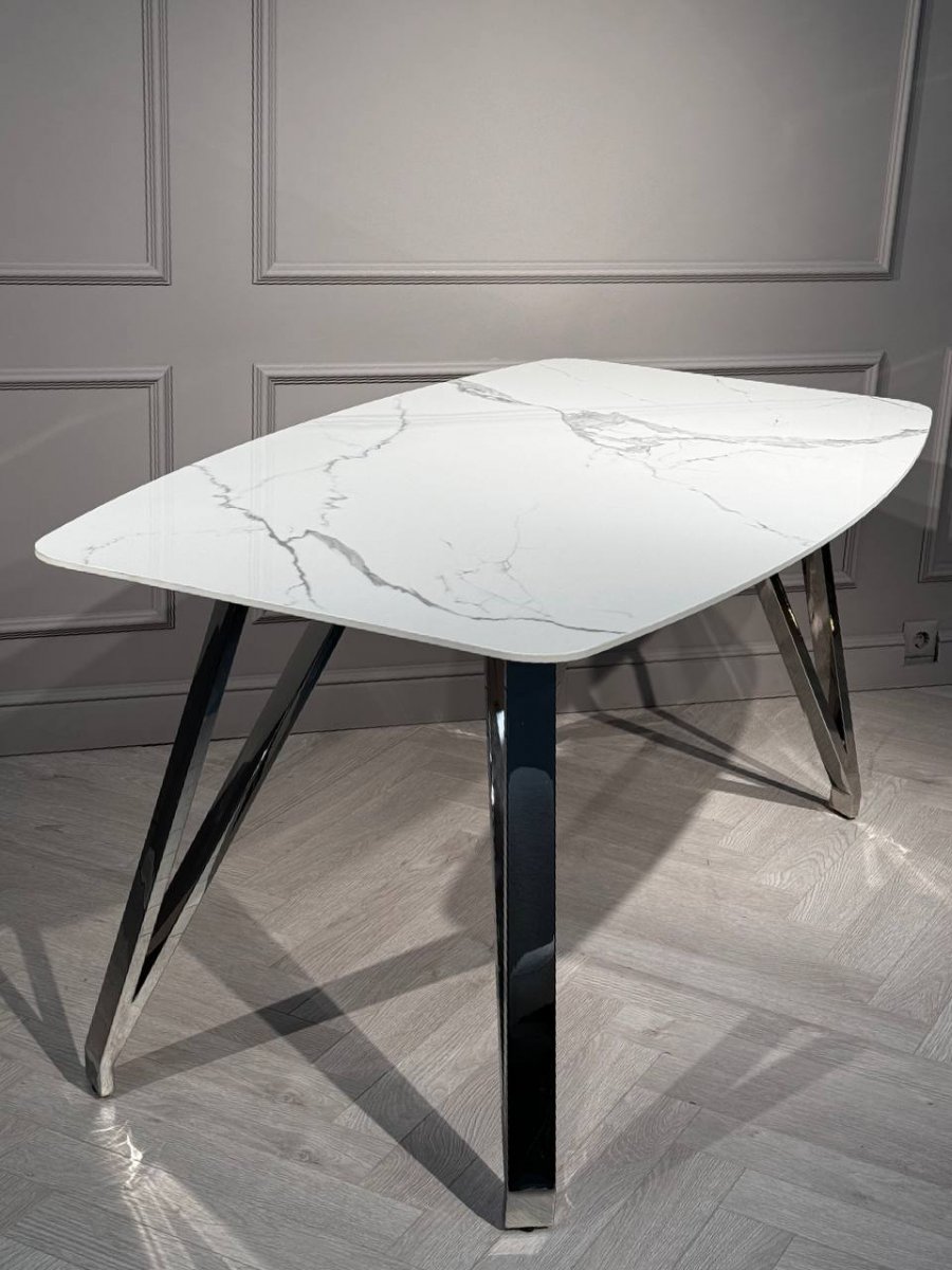 Стол обеденный Соар-2 F-1690,160х90х76 см, бело-серая керамика/хром серебро