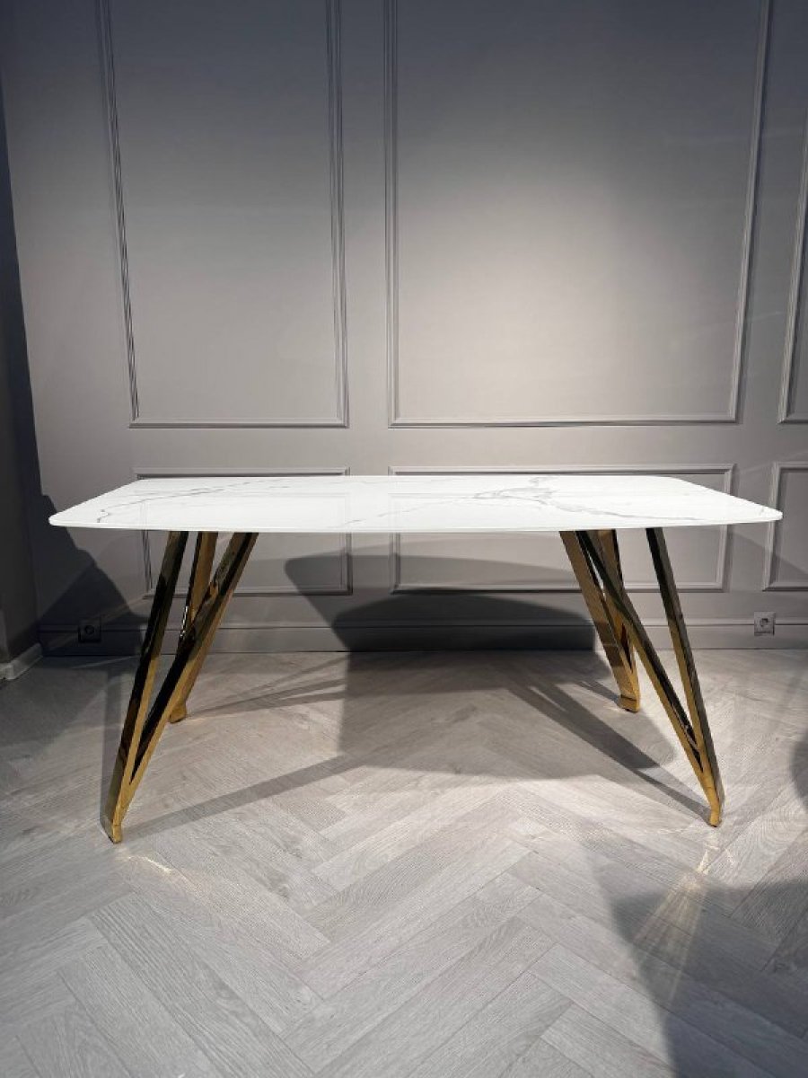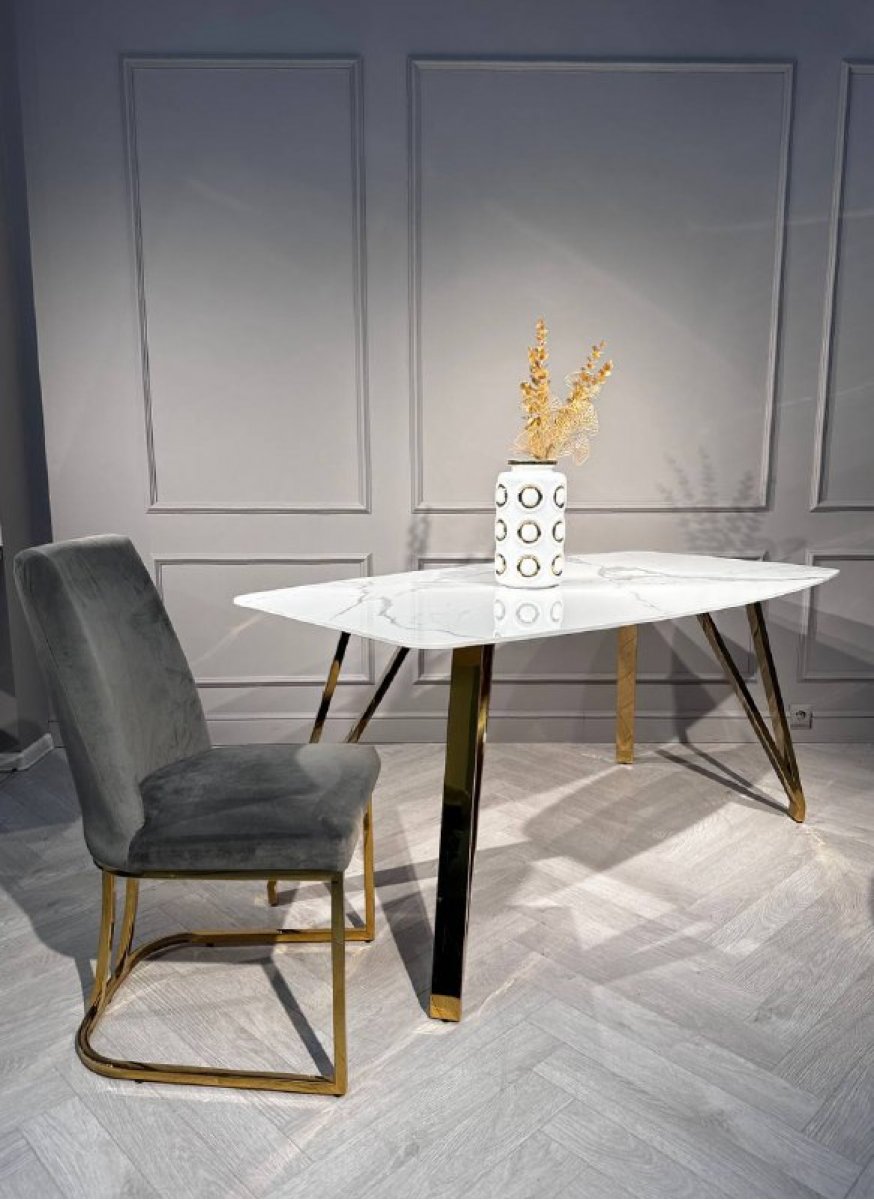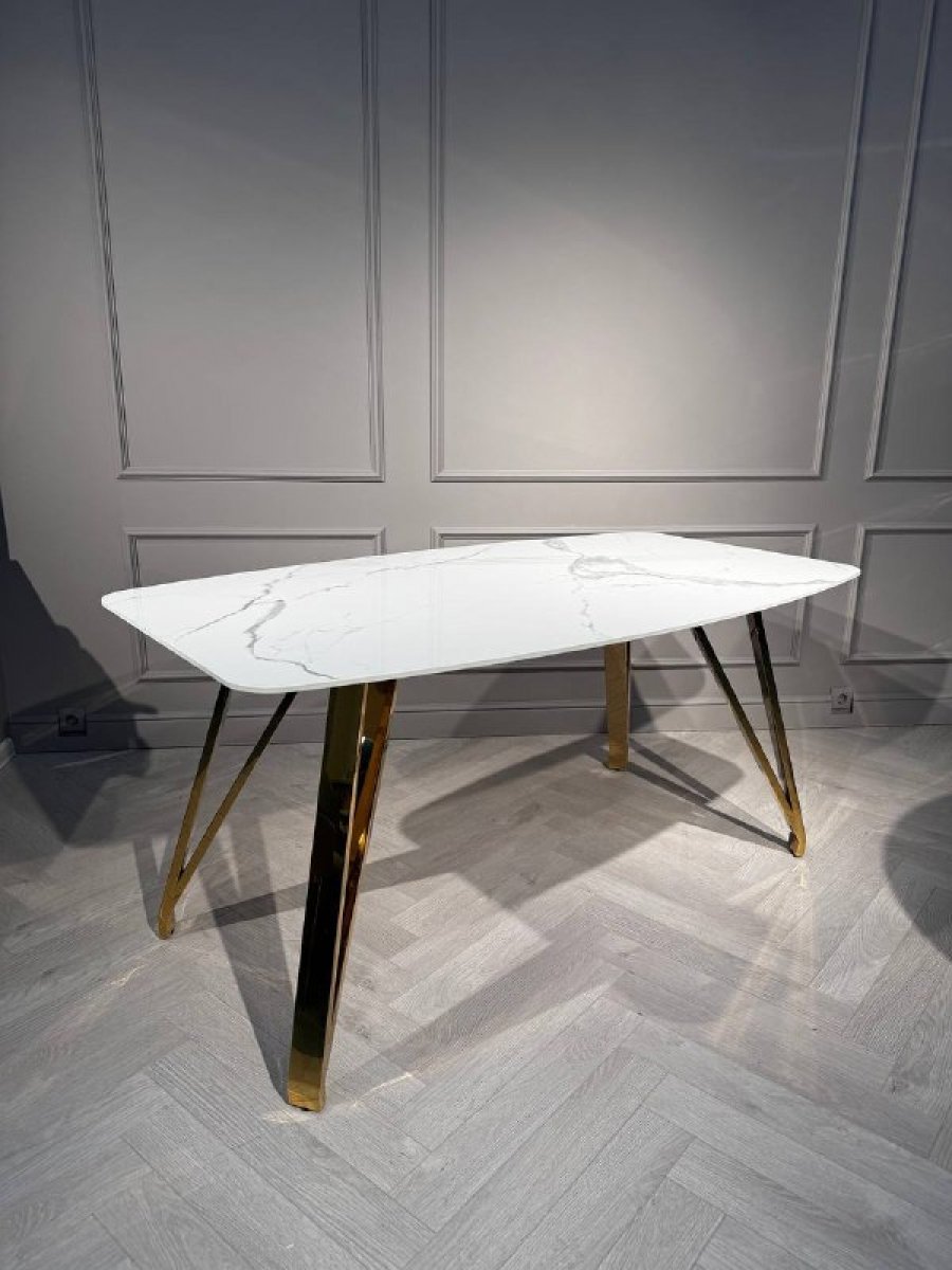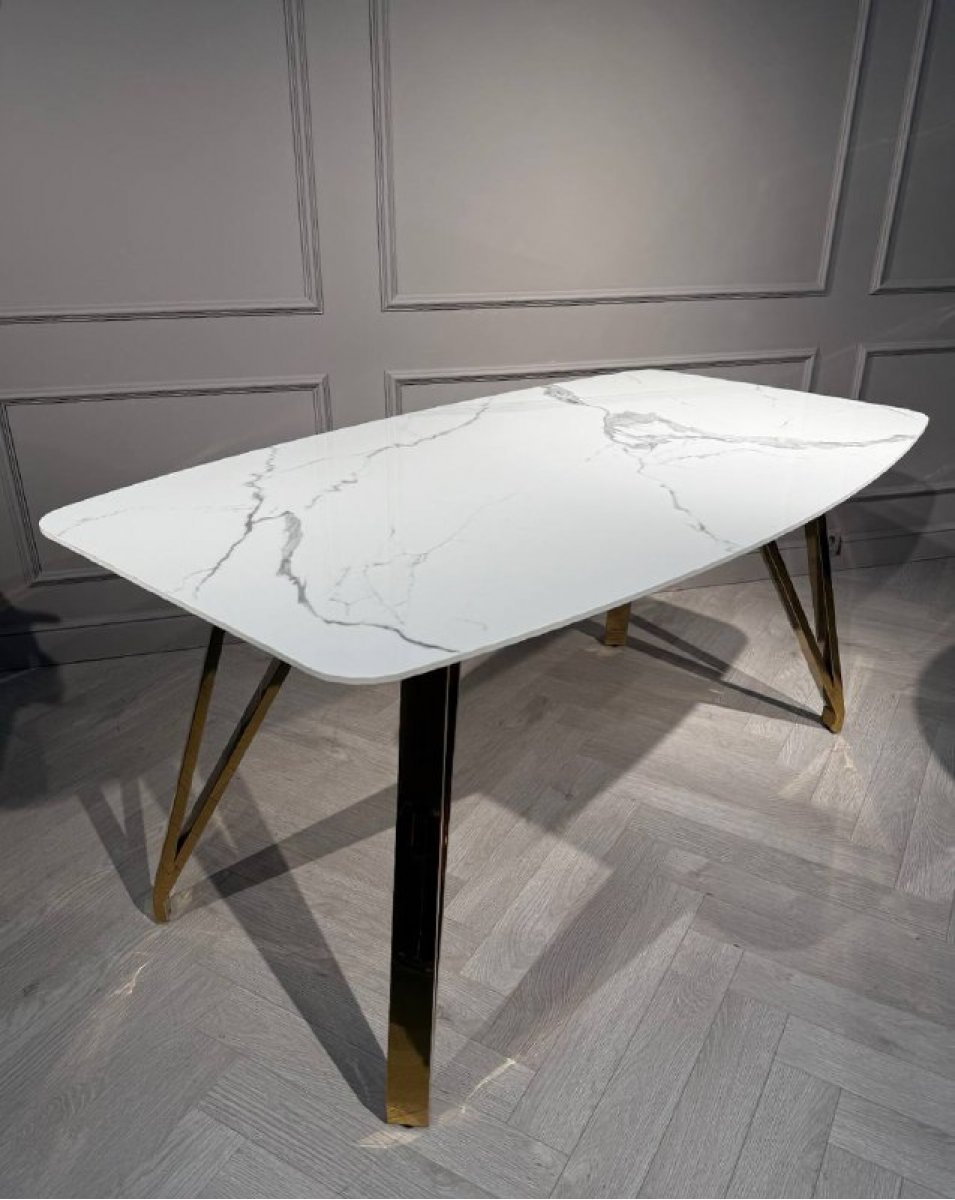 Стол обеденный Соар-2 F-1690,160х90х76 см, бело-серая керамика/золото