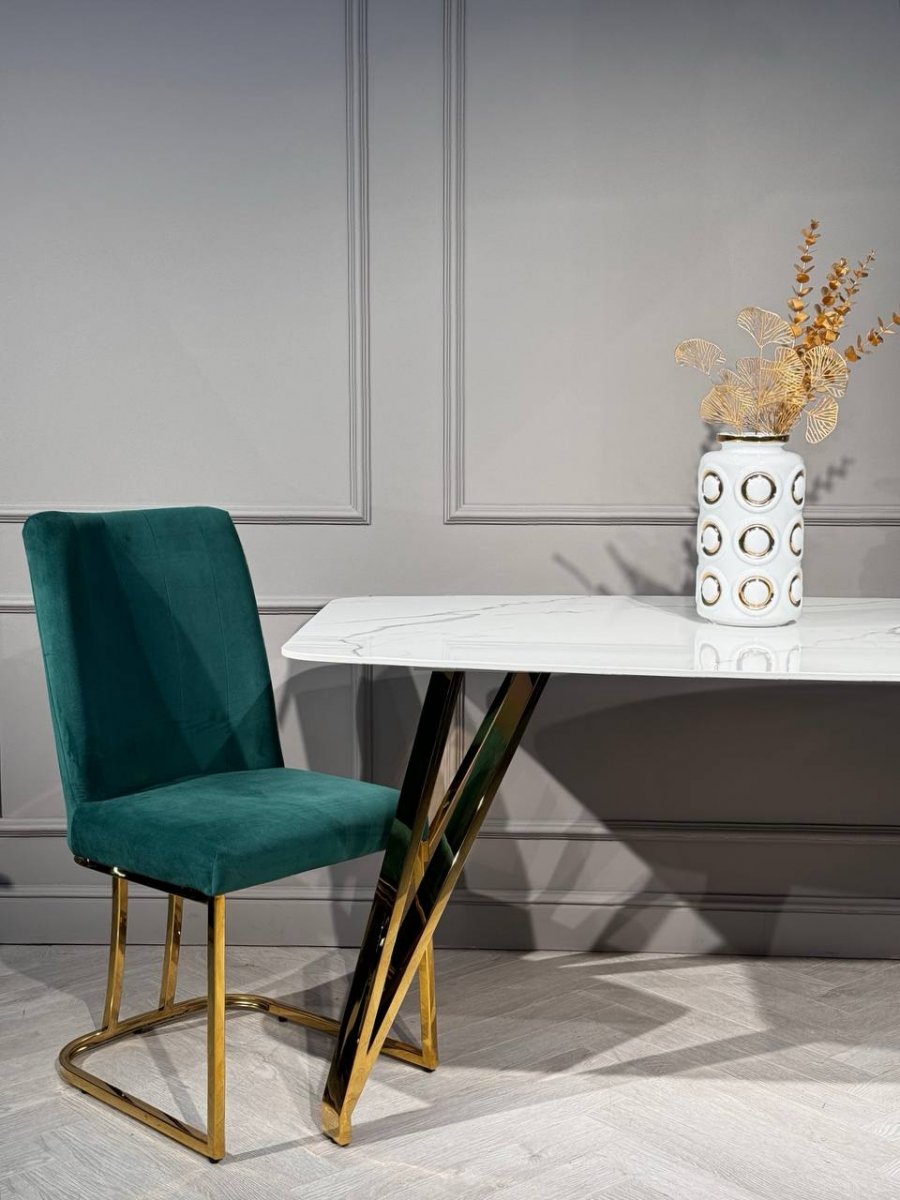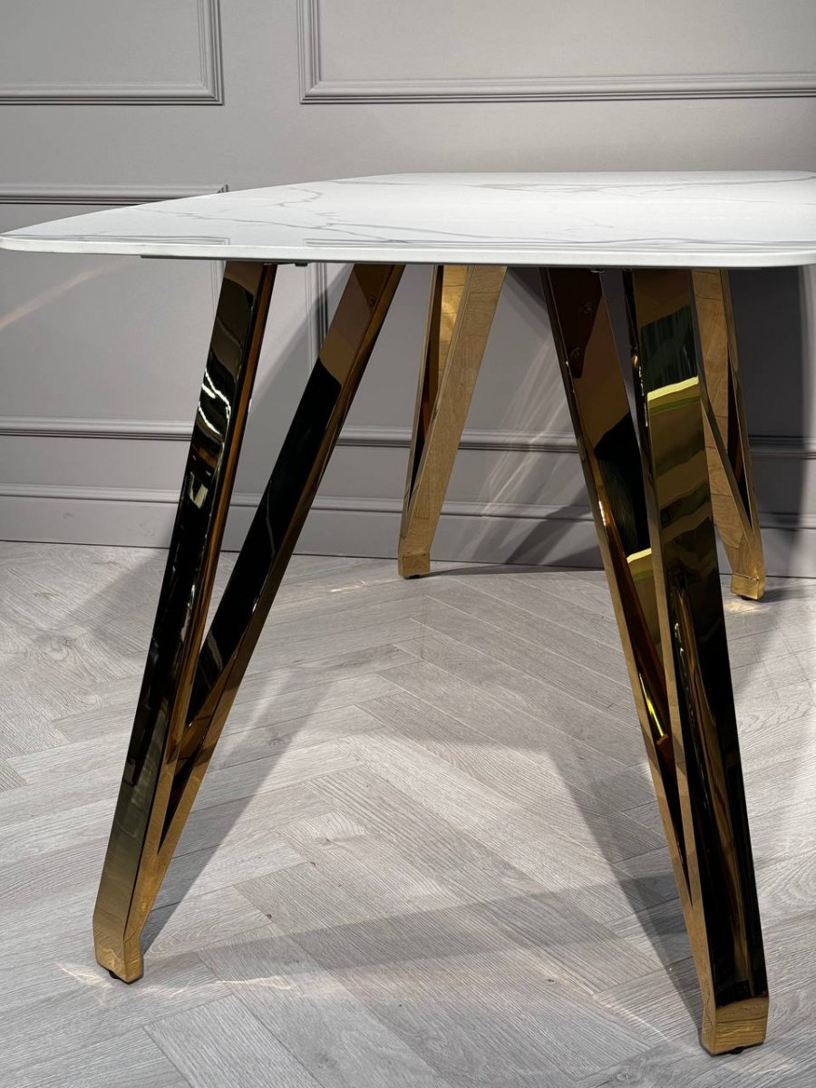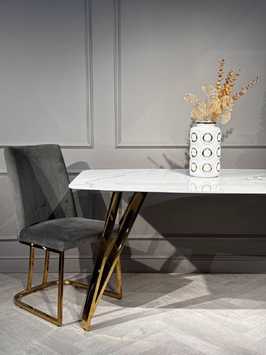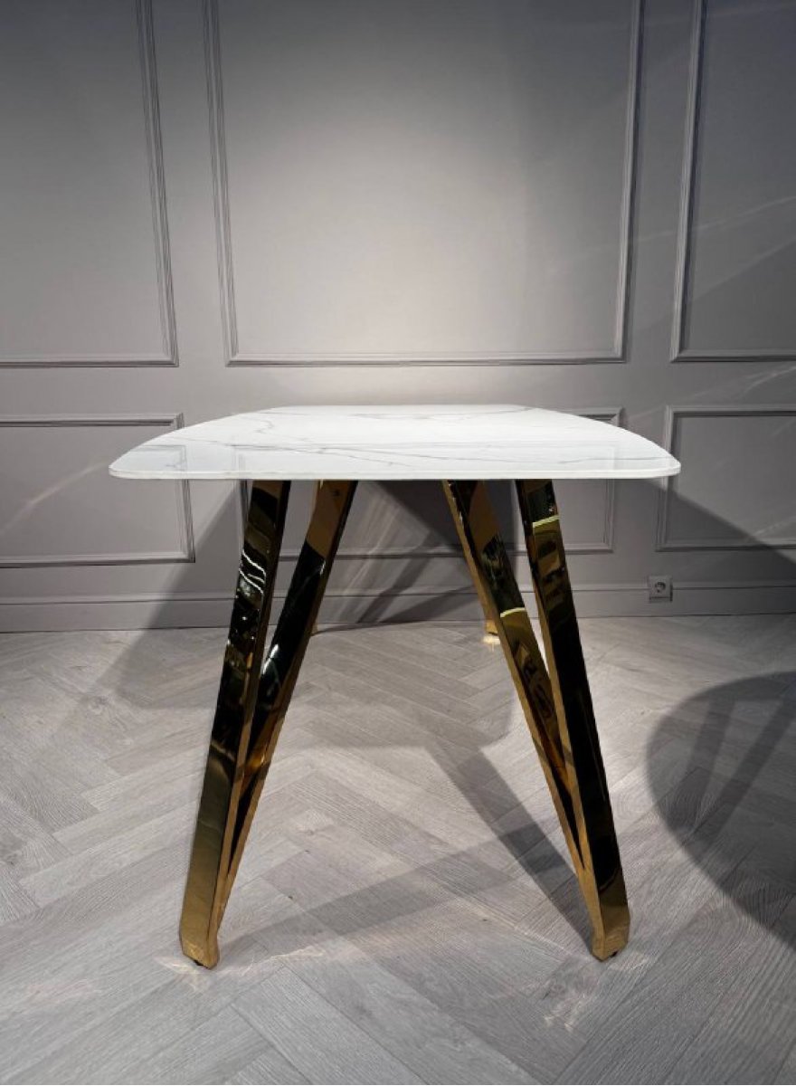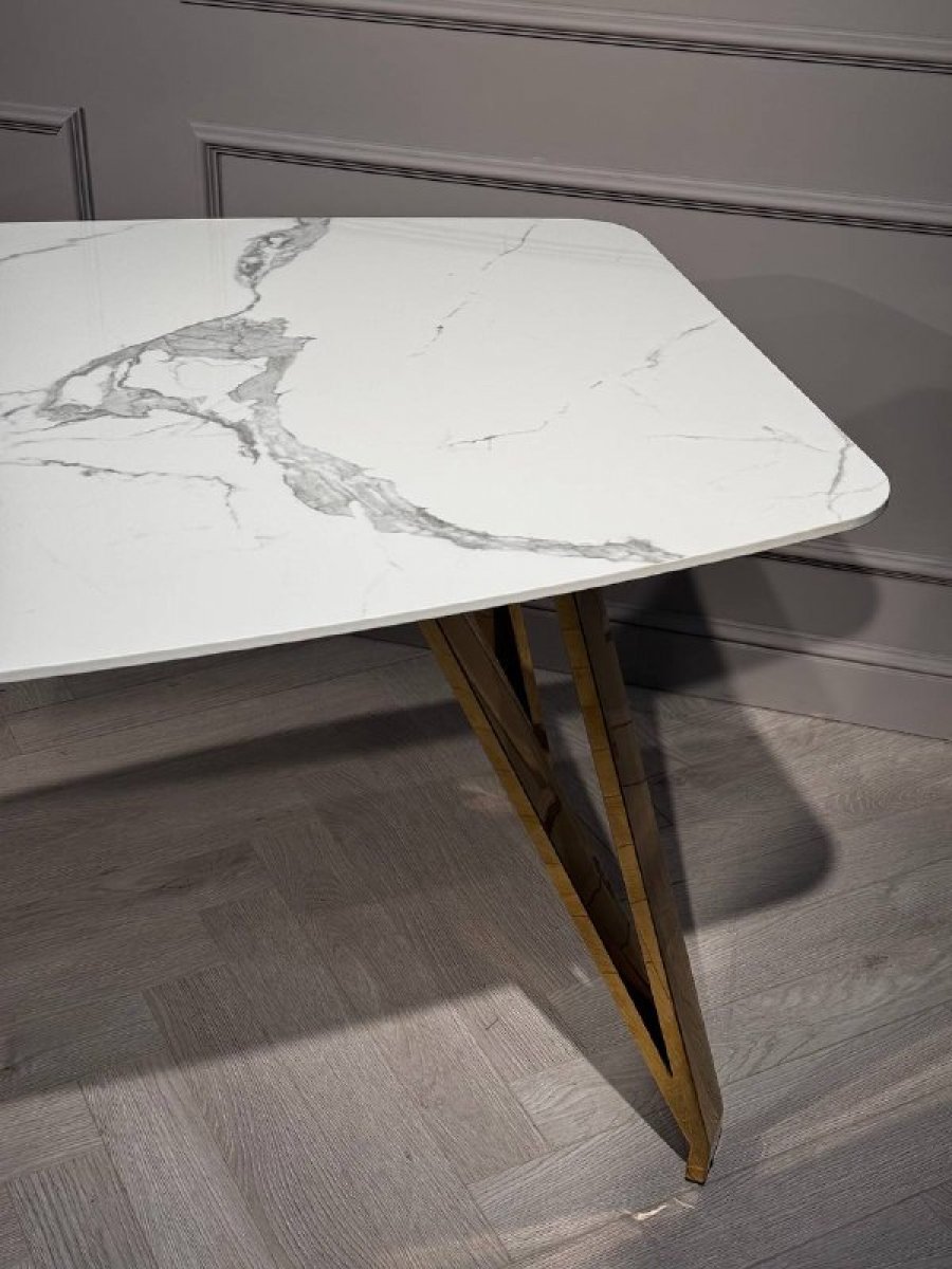 Стол обеденный Соар-2 F-1690,160х90х76 см, бело-серая керамика/золото