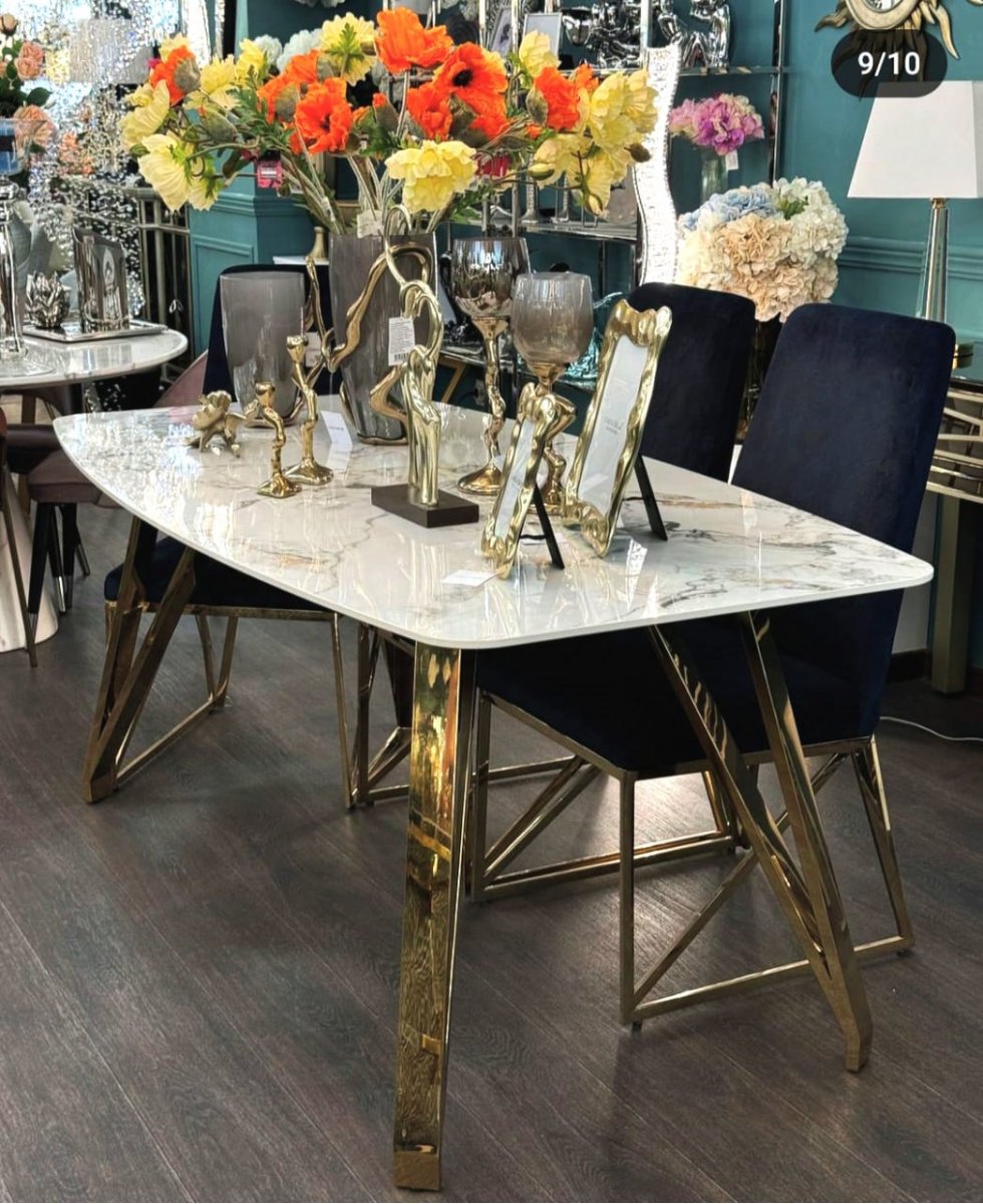 Стол обеденный Соар-2 F-1690,180х90х76 см, серо-золотая керамика/золото