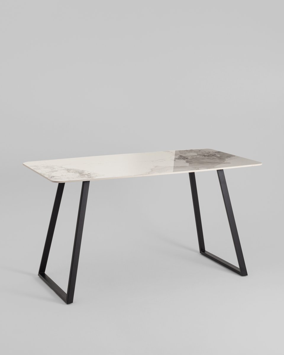 Стол обеденный Vermont 140*80 см керамика светлая ножки черные