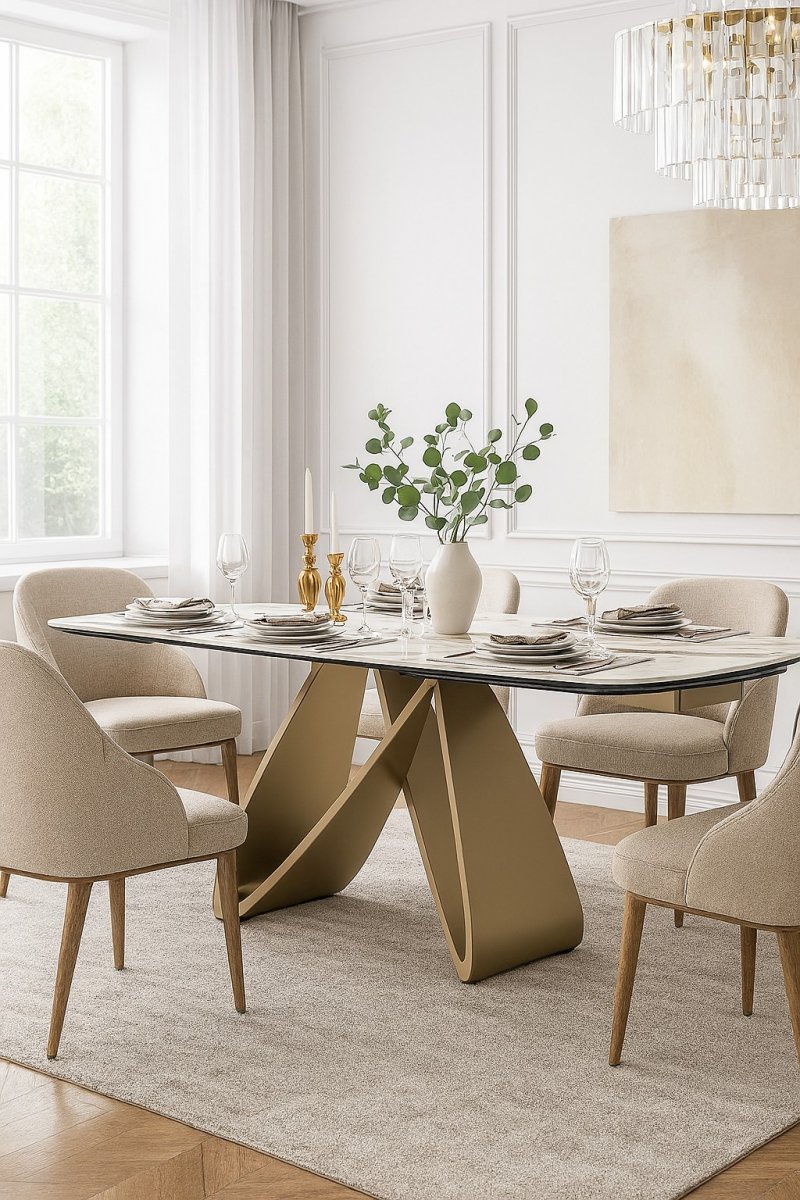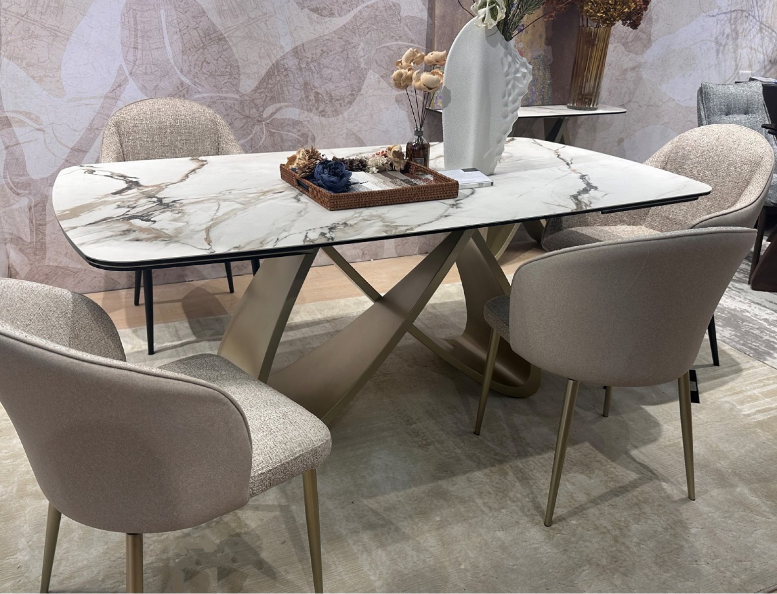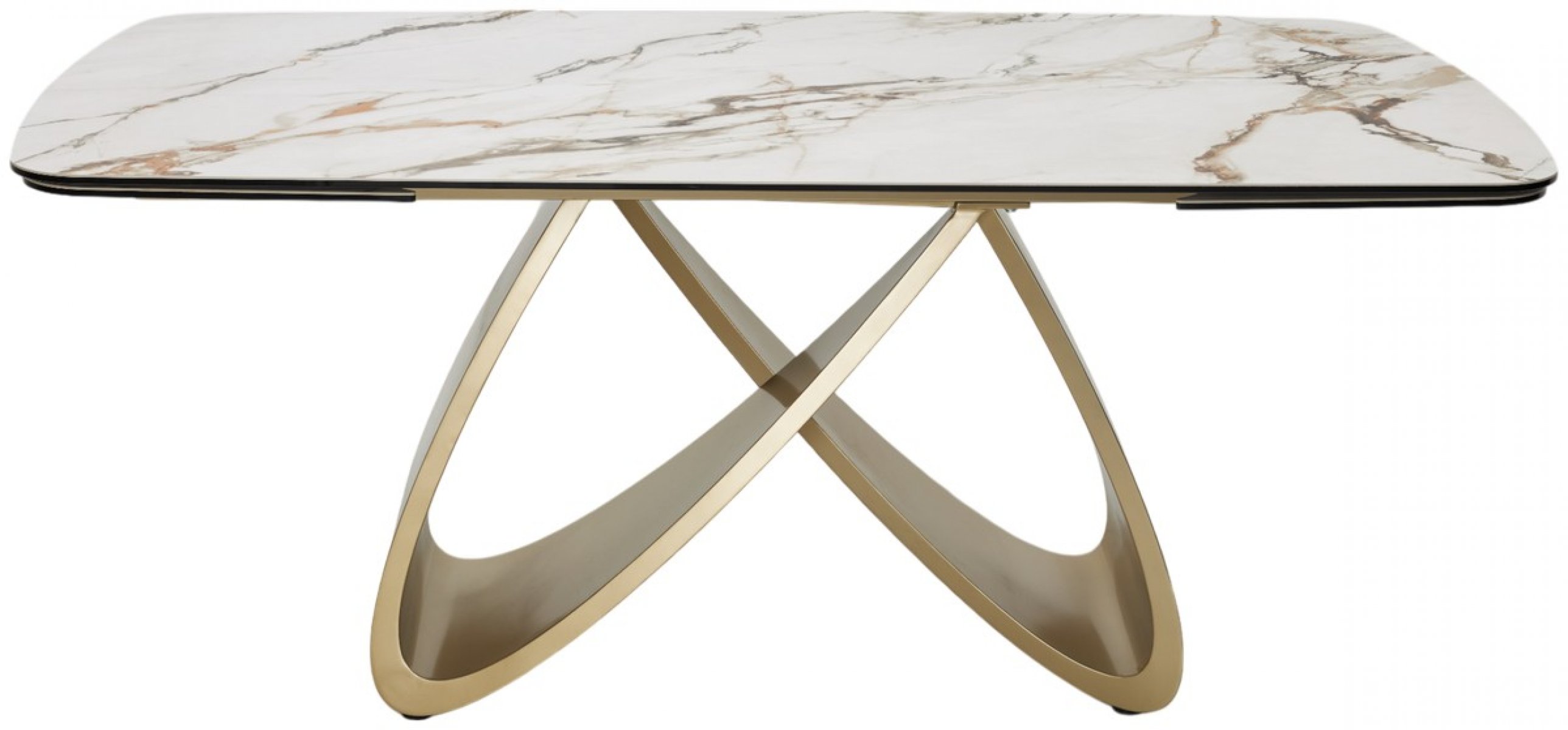 Стол PALACIO 180 KL-188 Контрастный мрамор матовый, итальянская керамика/ Шампань, ®DISAUR