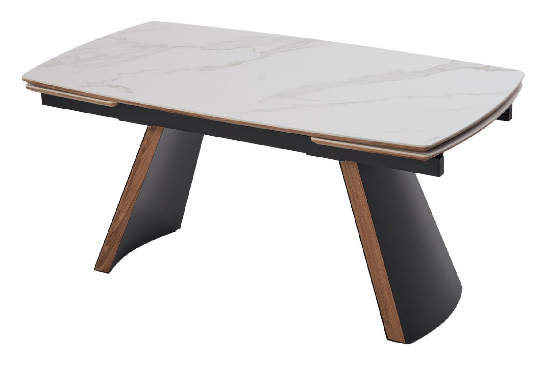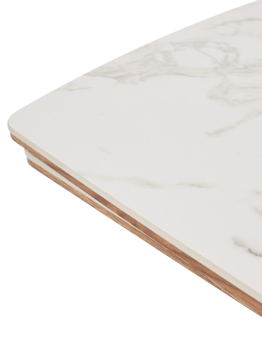 Стол РАНДЕВУ 160 БЕЛЫЙ МРАМОР МАТОВЫЙ 9806035 , керамика / Черный, Орех эко, М-City