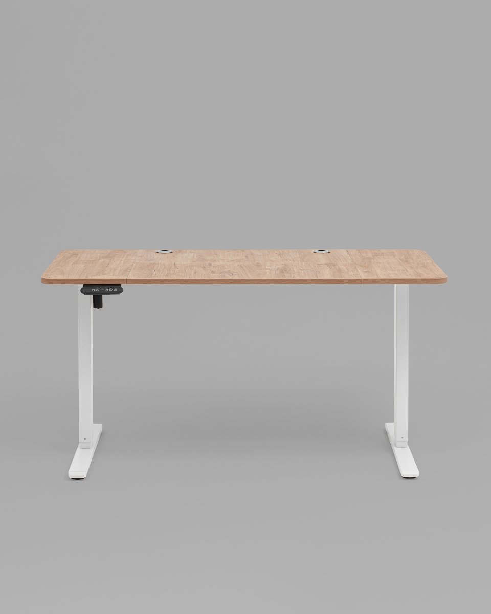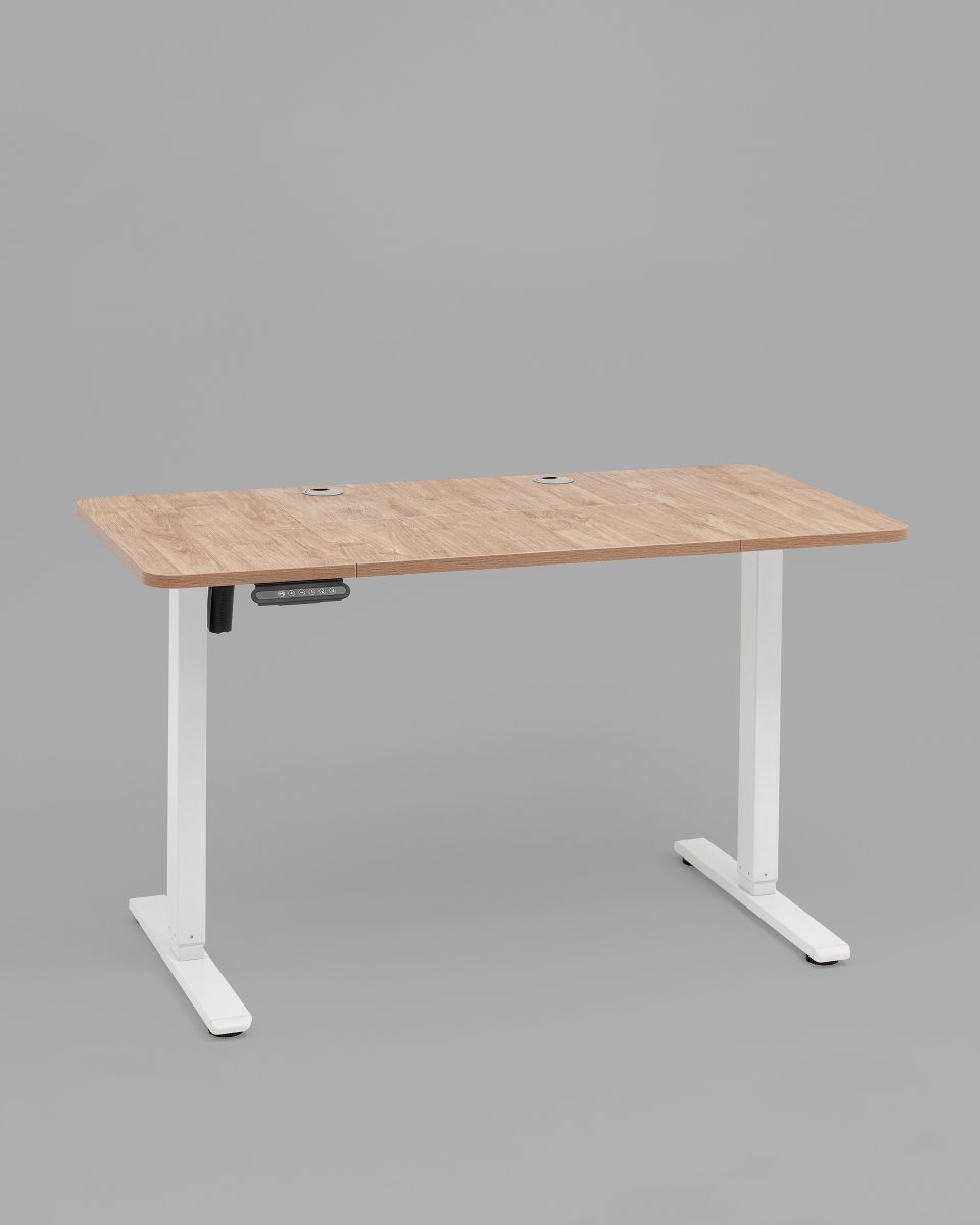 Стол с регулировкой высоты, 1 мотор, память 3 уровня высоты,белый, 120*60 см, светлое дерево