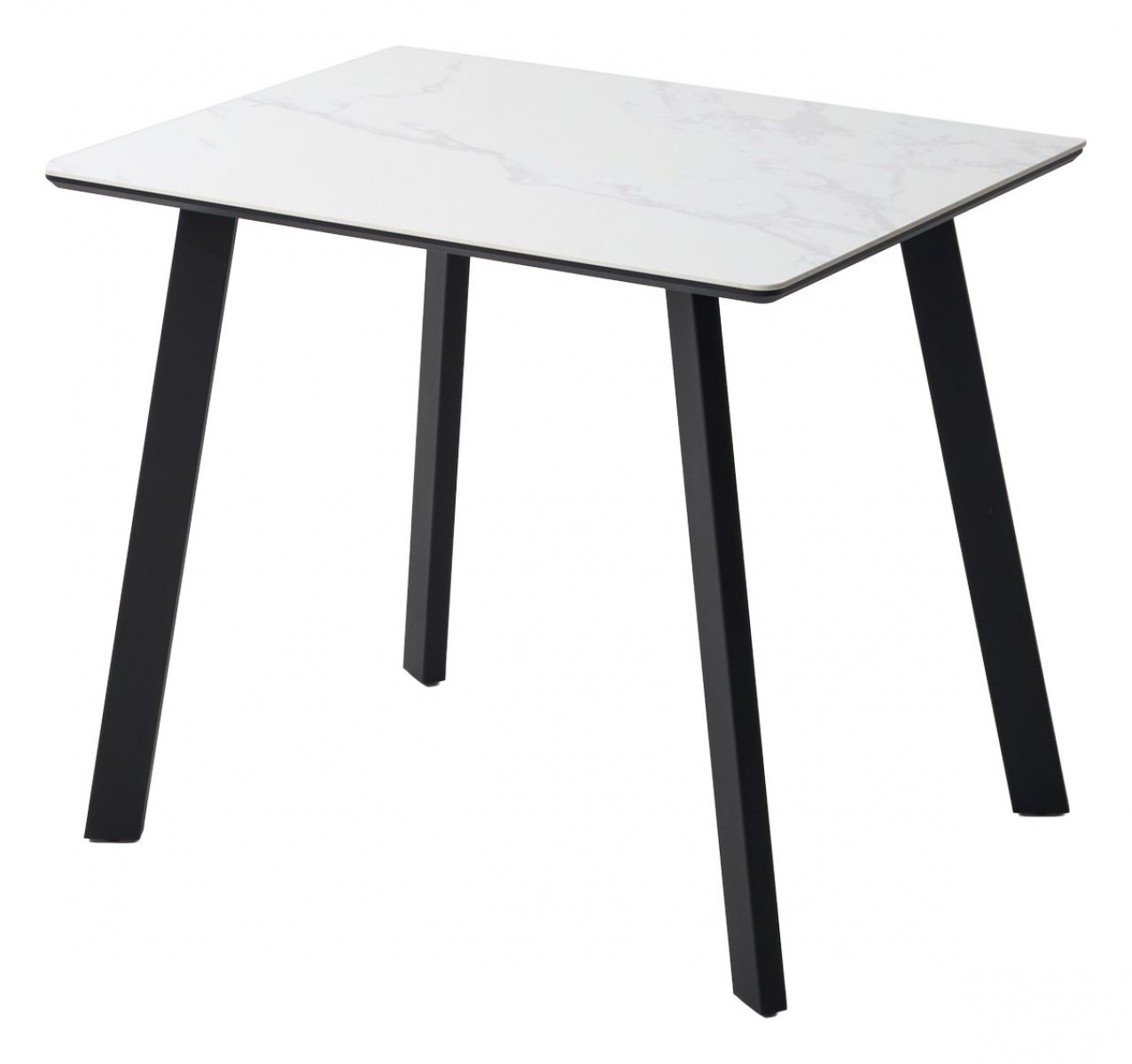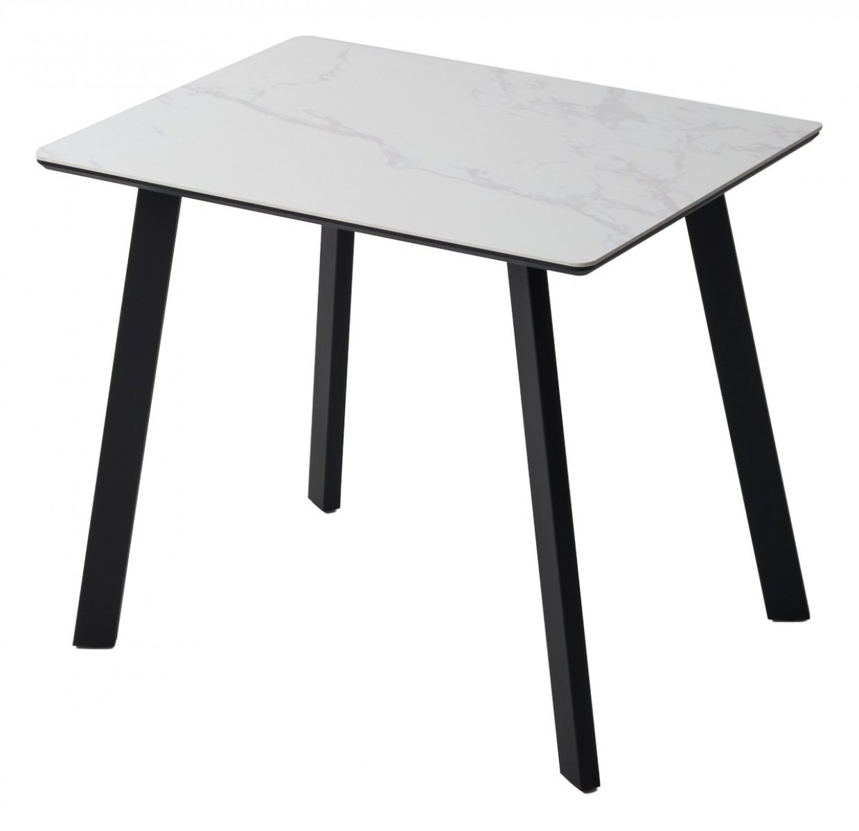 Стол ТИК ТАК 90 Белый мрамор MATTE, керамика / Черный каркас М-City