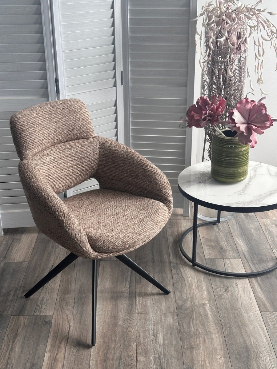 Стул АРНЭ (ARNE) 360 град, цвет КОРИЧНЕВЫЙ EYELASH -171, фактурный шенилл / ЧЕРНЫЙ каркас, ®DISAUR