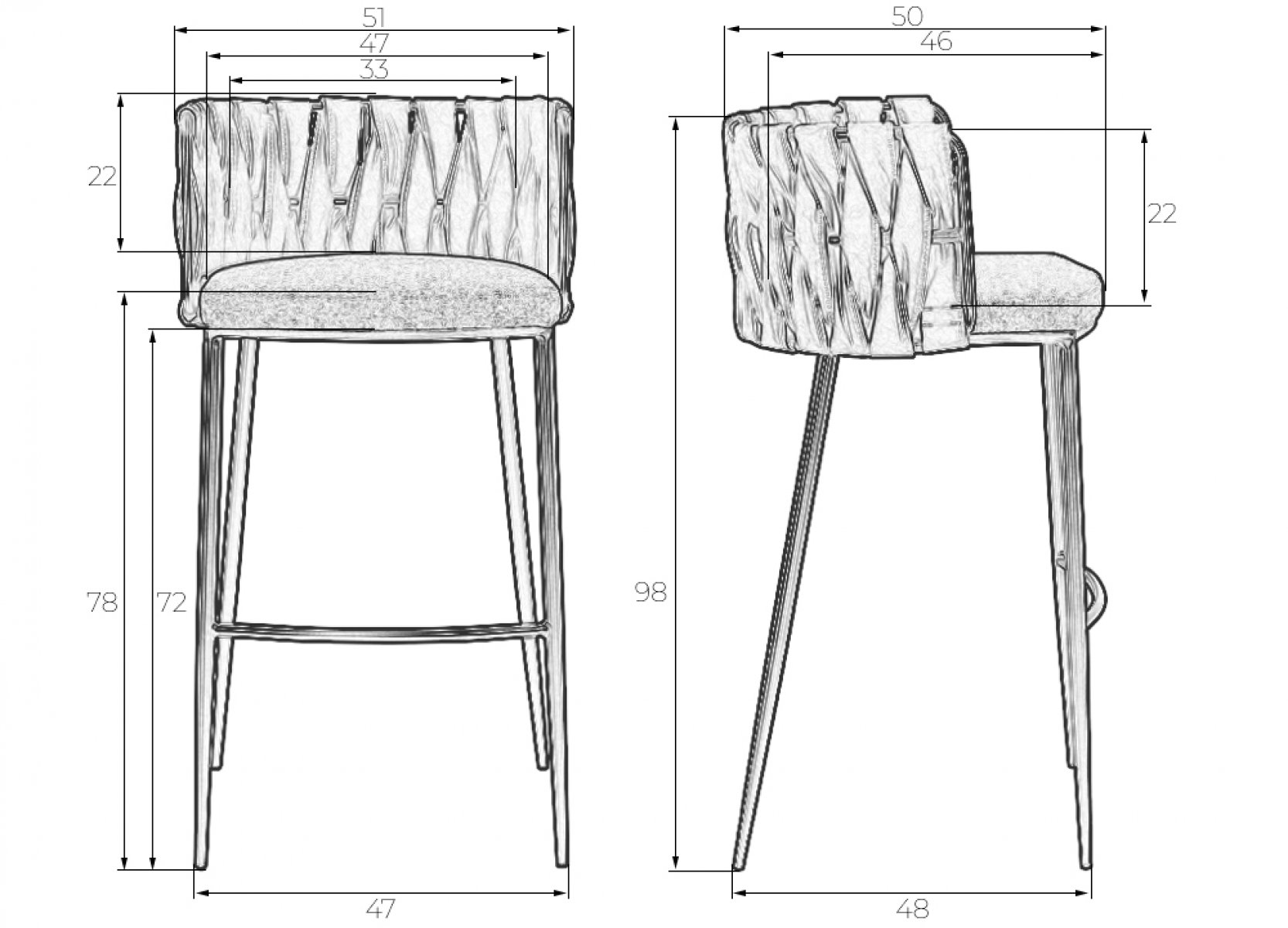 Стул барный DOBRIN EMMA GOLD, светло-серый велюр (135-37)