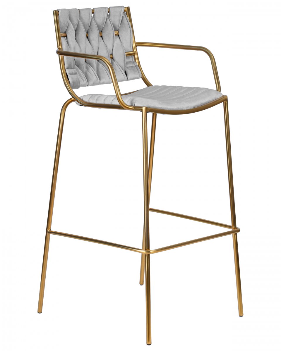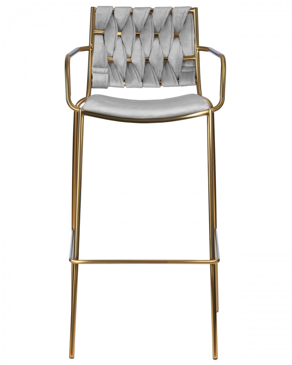 Стул барный DOBRIN MILLER GOLD, светло-серый велюр (135-37)